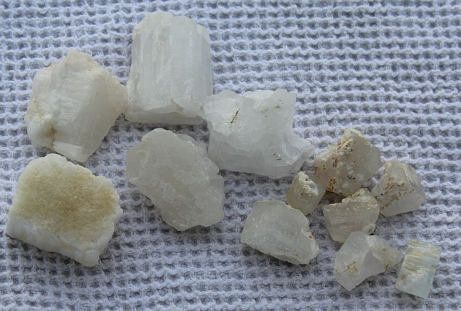Denke auch nicht wegen der Härte, da Beryllonite einen Härtegrad von ca. 6.5 haben und ich mit dem Schaber es nicht ritzen konnte. Habe eben diese 7 mit meinen paar Beryllonite wo ich gerade zur Hand habe mal auf Foto getan. Wenn ich Aquamarine hinzu tue gibt es ein ganz anderen Kontrast der Farben +##
