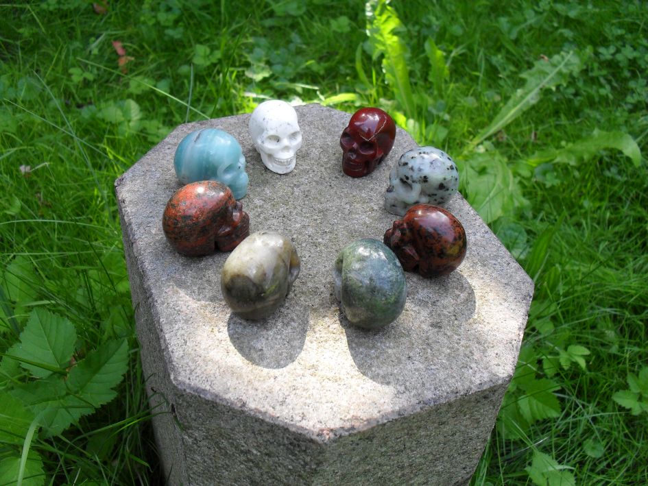 Nun ist nicht davon auszugehen, dass jemandes Seele sich in meinen Labradorit-Skull oder die schöne Sughra (Piemontit) verirrt hat, trotzdem stehen meine Skulls für mich vor allem für die überlieferten Vorstellungen, die volksfrommen, apotropäischen und sonst weiter überlieferten Sichtweisen, die man in zahllosen Kulturen und Zeiten mit einem Schädel verbunden hat.