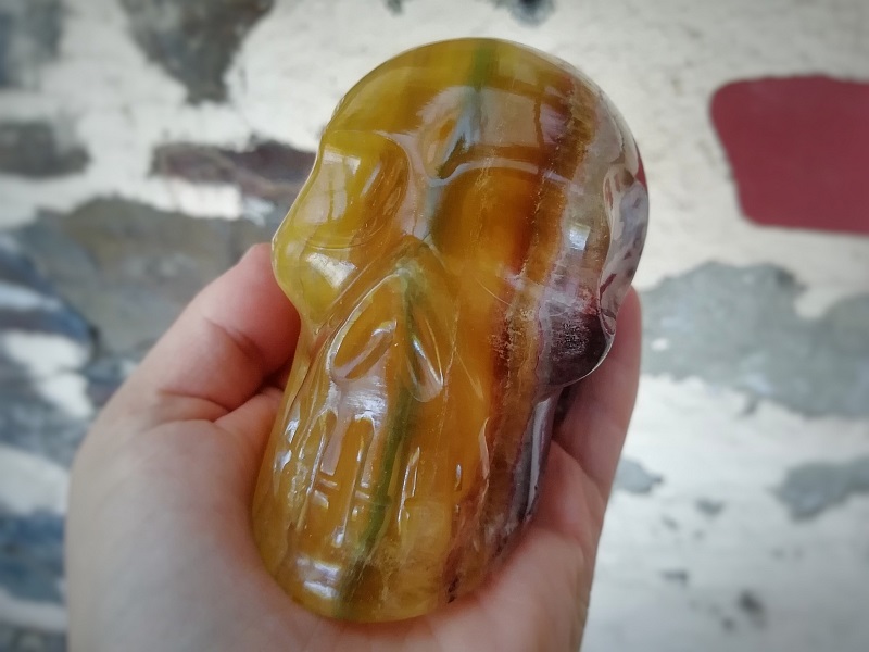 Ich muss ehrlich gestehen, dass ich nie an eine überirdische Herkunft oder sonst außergewöhnliche Weisheit geglaubt habe, die in den Skulls steckt. Das muss ich dazusagen. Für mich sind sie einfach ein Mineral, das in eine (mehr oder weniger gekonnte) Schädelform gebracht wurde. Besonders interessiere ich mich eigentlich für sie, weil ich allgemein an Schädeln (und ihrer Bedeutung in verschiedenen Kulturen) und Heilsteinen interessiert bin.