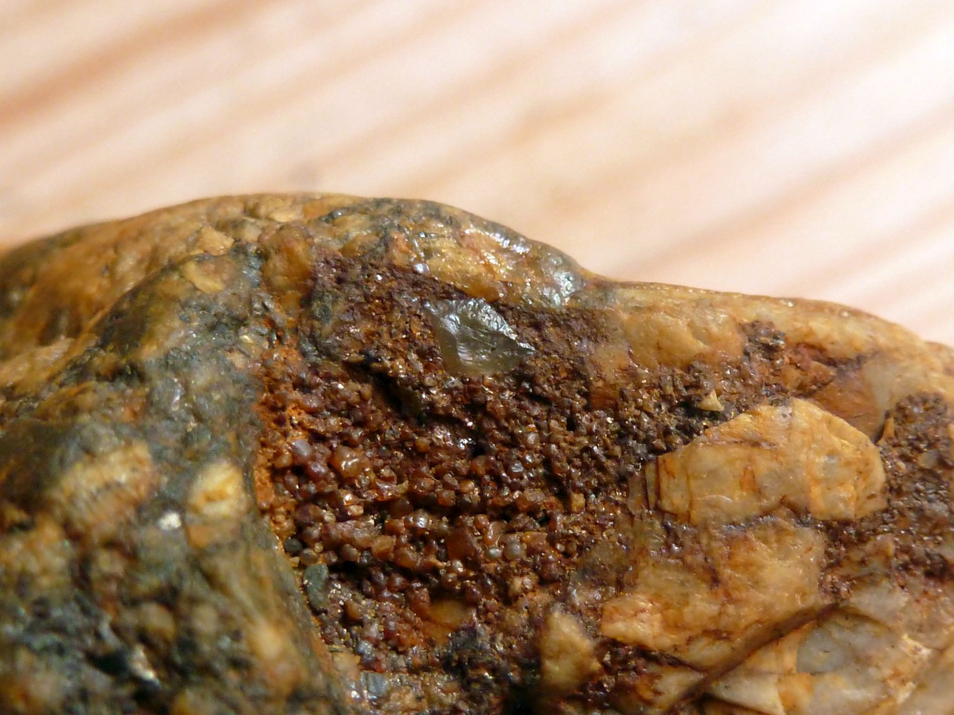 Hier noch ein Foto, wo man das Schillern der Feldspäte gut sehen kann