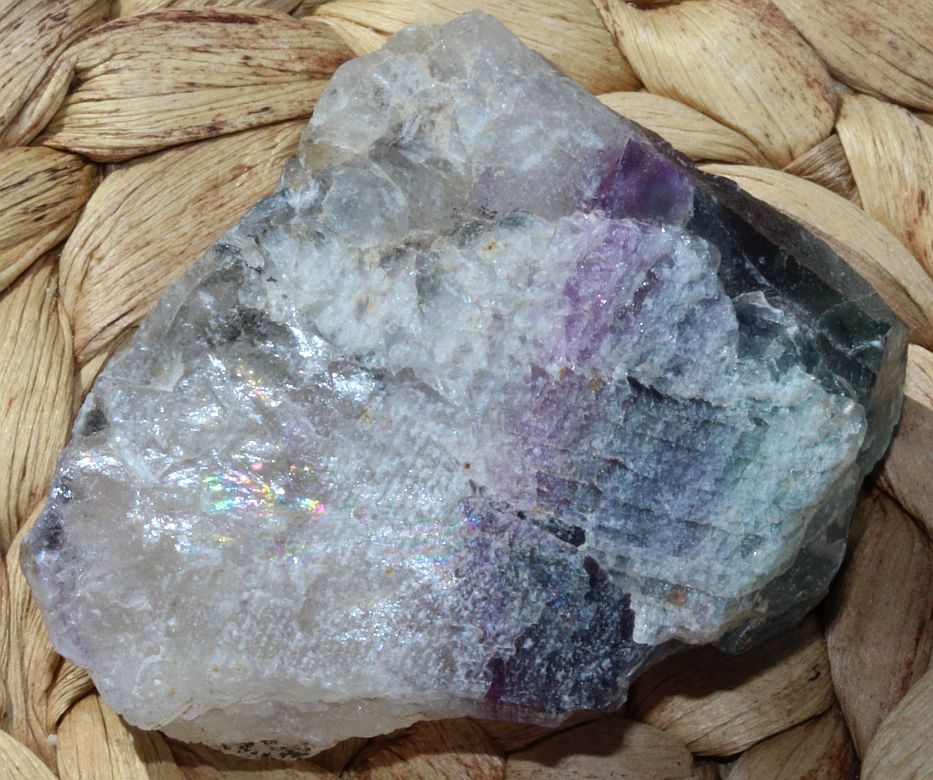 Im Moment habe ich gerade dieses Rohstück von Regenbogenfluorit in der Hand, das gestern auch gekommen ist.