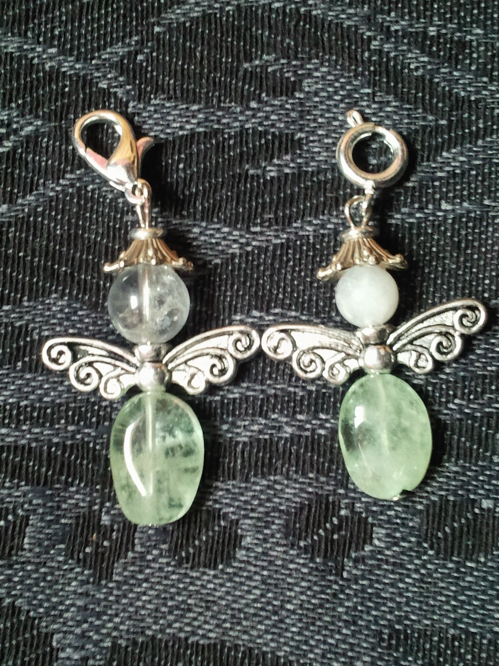 bestehend aus Prehnit(Bauch) und einmal Bergkristall und einmal Mondstein(Kopf)
