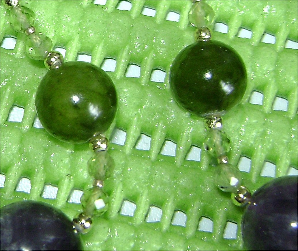ich habe meine beiden neuen ketten endlich fertig und sehe nun etwas ganz komisches. ich habe die dicken grünen kugeln als jade stränge gekauft und das bei einem deutschen händler.