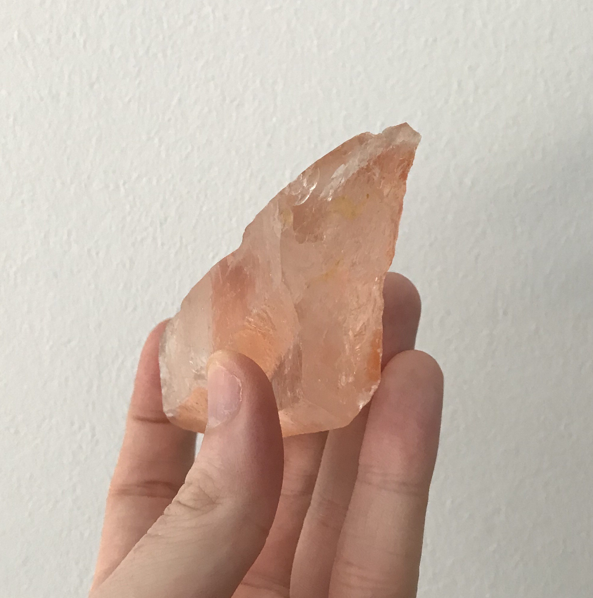 Heute möchte ich euch meinen neuen Mandarinenquarz (Tangerine-Quarz) vorstellen. Er ist relativ groß, aber nachdem ich viele kleine Spitzen gekauft hatte, musste dieser noch mit. Ich liebe diese Rohformen einfach.