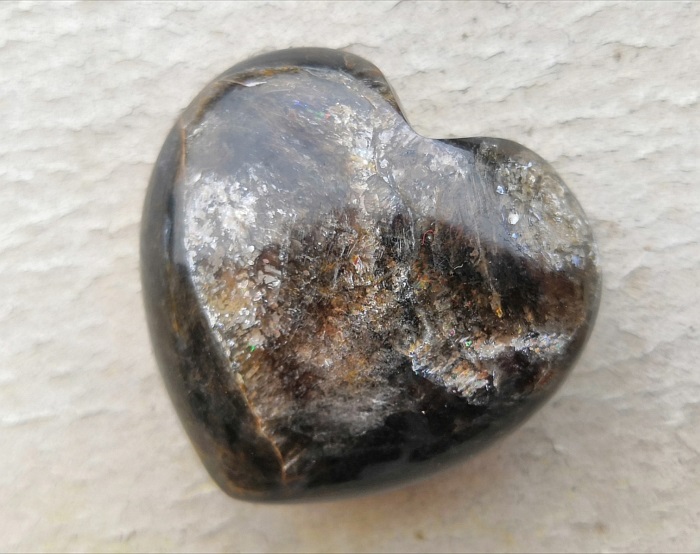 Tatsächlich, sieht ihm recht ähnlich. Biotit quasi als Trommelstein in Herzform. Oder doch Muskovit. Zumindest findet man bei Google unter Muskovit Trommelstein vereinzelt Trommler, die optisch so aussehen wie mein Herz. Etwas blöd finde ich es, dass ich in meiner Literatur fast gar nix finden kann über Muskovit.