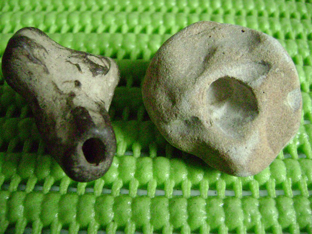 ich weiß nicht so recht, denn das loch auf der rückseite ist ganz klein. zuerst dachte ich, da hat jemand dran gebohrt, aber wieso sollte er dann noch am strand liegen.