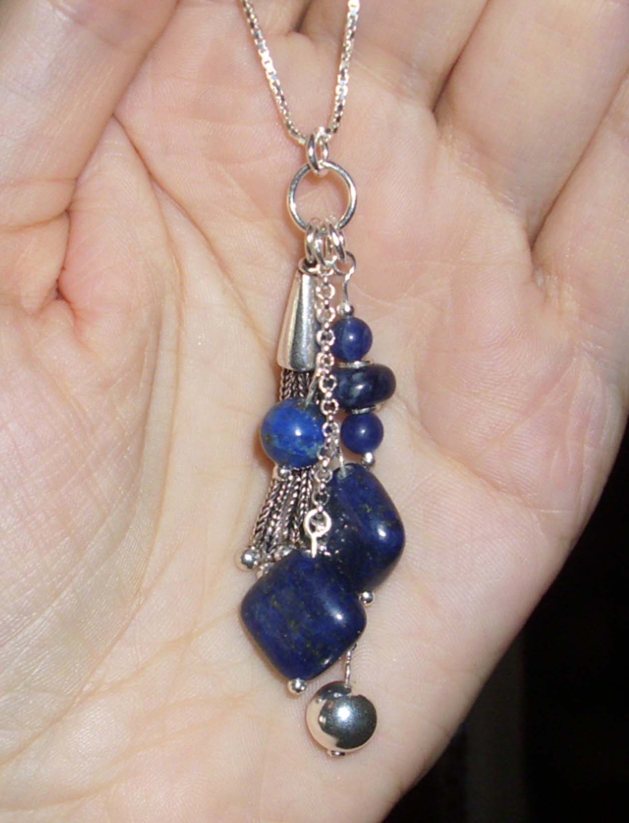 Und nun der letzte im Bunde, ein Lapis-Anhänger, ebenfalls für eine lange Silberkette bestimmt.