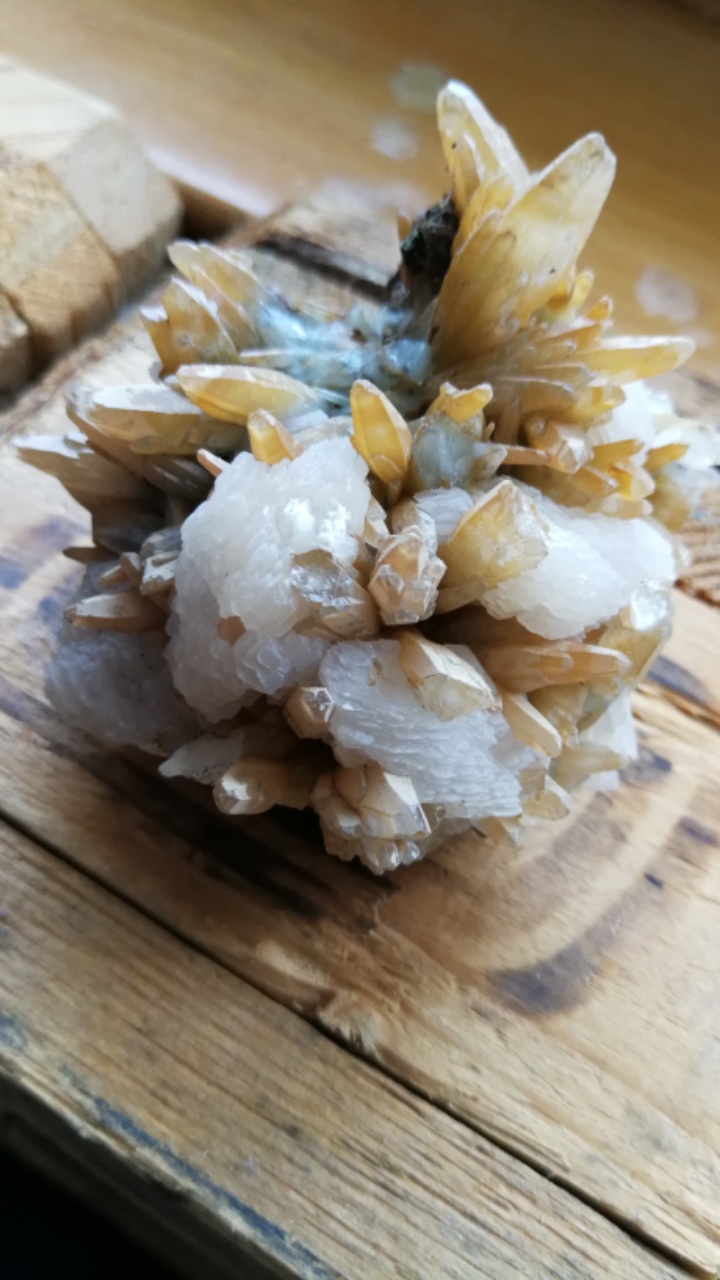 Bin neu hier und hoffe, Ihr könnt mir in diesem (und den folgenden) Artikel helfen. Ich habe diesen schönen Stein aus einer Brockenstube. Für mich sieht es nach mindestens 4 verschiedenen Mineralien aus: grosse gelb-bräunliche Spitzen (weiss aber nicht ob diese nur verschmutzt sind, obwohl der Stein gewaschen wurde), hellblaue Quarzansammlung, kleine Pyritbildungen neben dem hellblauen Quarz und dann noch die weissen "geschichteten" Steine.