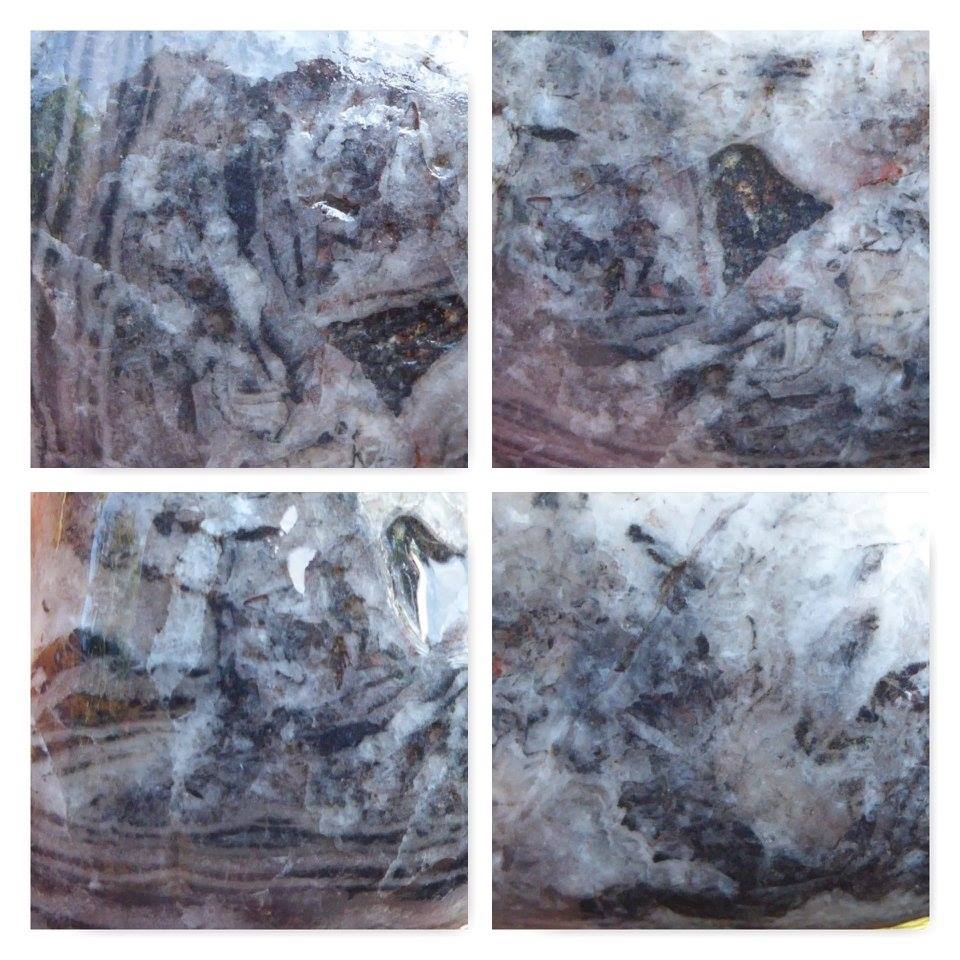 Trümmerachat besteht aus Achatbruchstücken,die bei tektonischen Ereignissen zerbrachen und durch Quarz neu miteinander verbunden wurden.