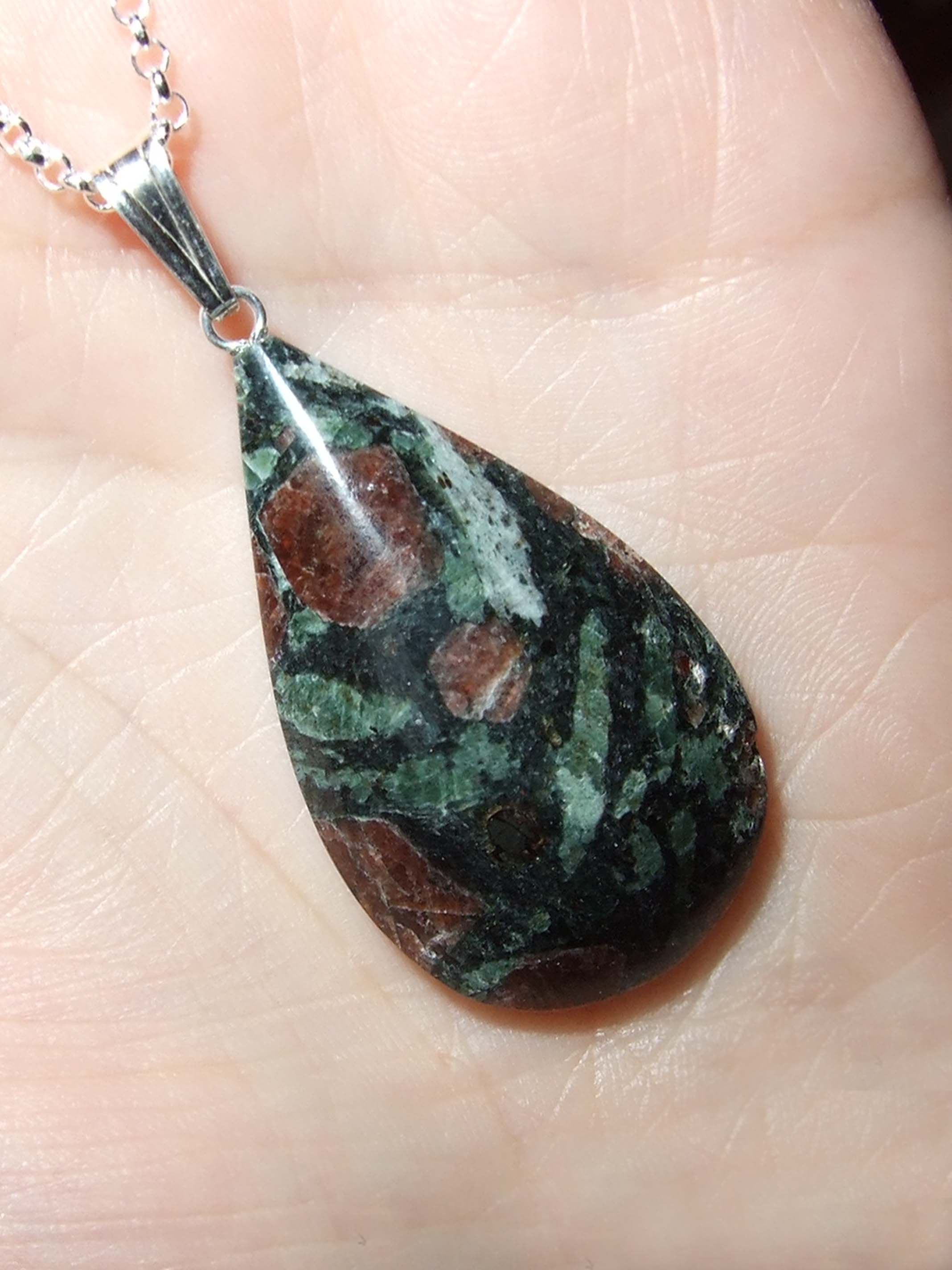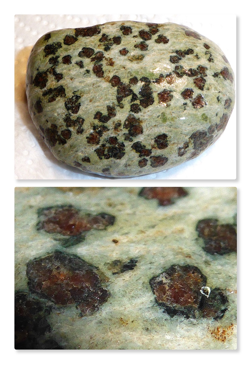 dieser handgeschliffene Eklogit hat den Durchmesser eines 2 (€-)Cent Stückes