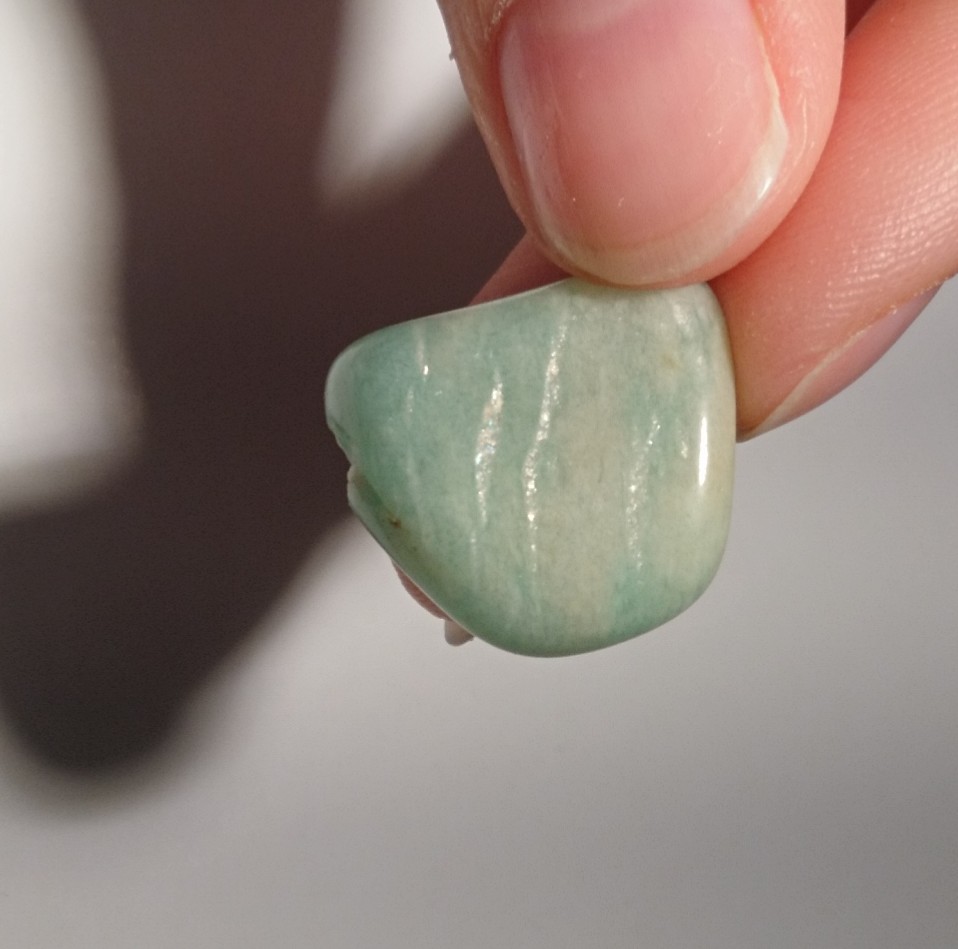 Ich habe unter Amazonit Bilder von vergleichbaren Steinen zu meinem gefunden