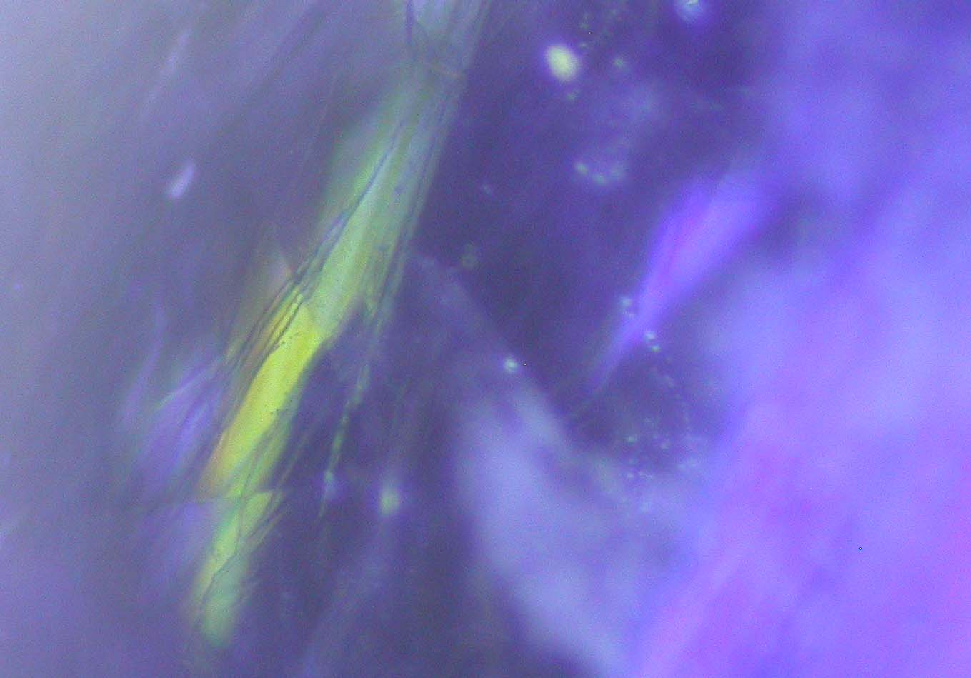 Ergebnis: Schwach rosa Saphir wurde crackeliert, mit Farbstoff und Glas gefüllt und als blauer Saphir angeboten und verkauft!