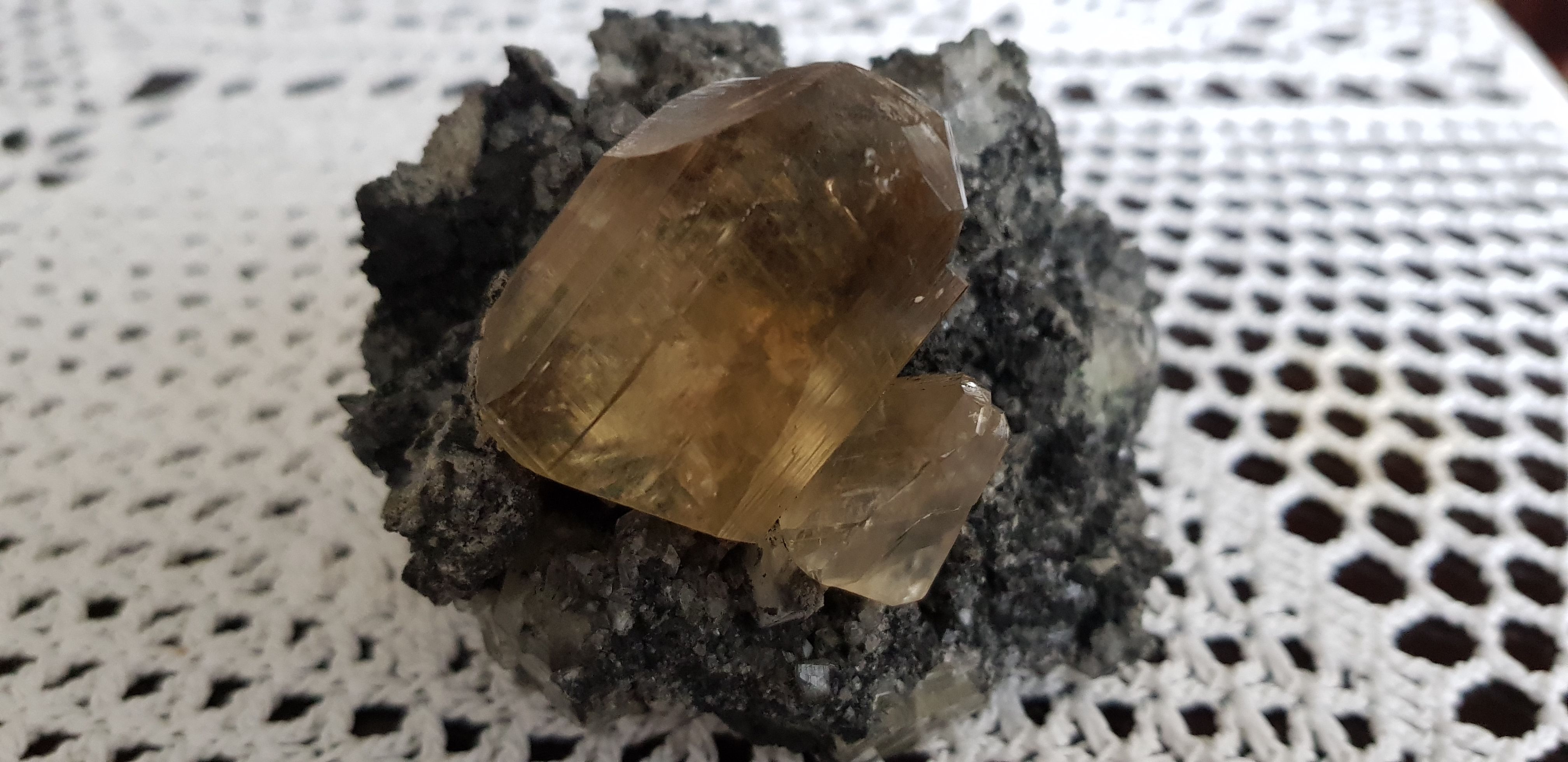Oben drauf sind 2 gelbe Quarze(?)