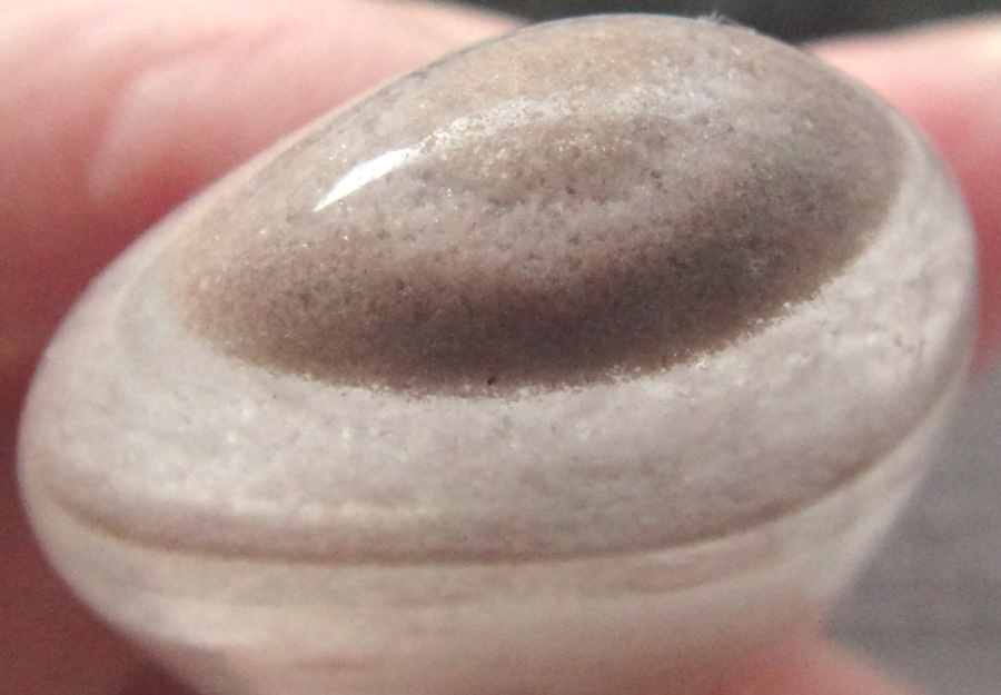 Ich vermute dass es ein Bergkristall mit einem Phantom ist, der aus einem größeren Stück stammt. Am einen Ende ist ja das gleiche Material wie im Stein; und das fotografiere ich dann auch noch mal.
