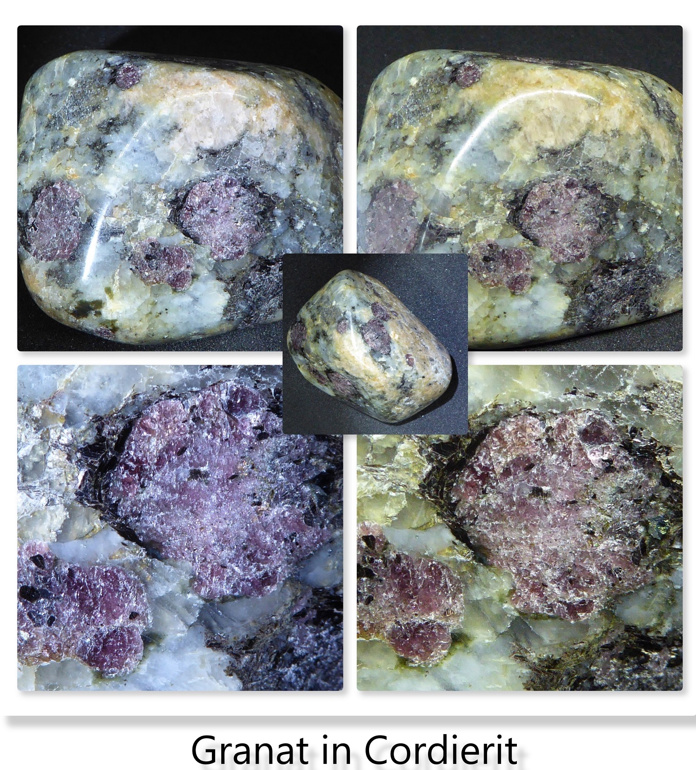 Granat in Cordierit beinhaltet auch Biotit und Feldspat