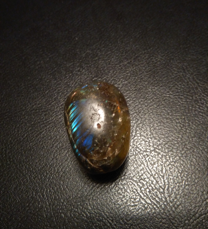 Der Handschmeichler labradorisiert auf einer Seite schön blau/violett und auf der anderen Seite goldfarben.