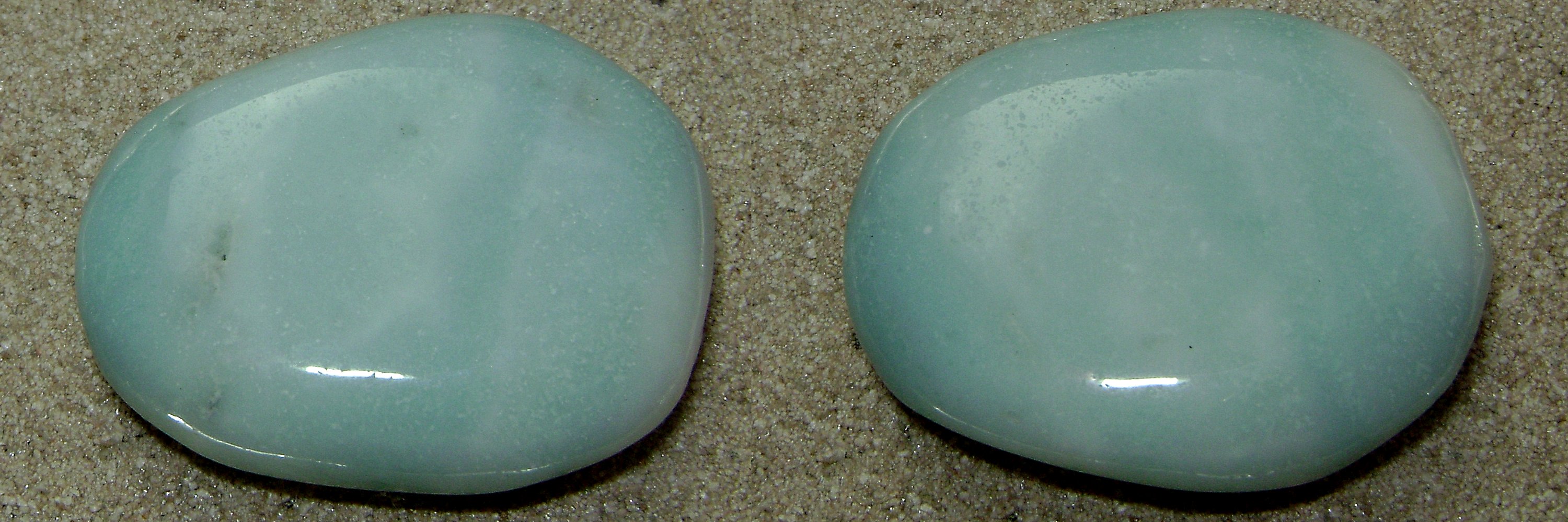 so ist es auch, ich sagte ja bereits, dass mir der ersatz amethyst nicht glücklich macht. mir war gestern nachmittag danach, mal in meiner schale mit den trommlern zu gucken und siehe da, ganz unten unter allen anderen, hatte sich ein Amazonit scheibenstein versteckt. wusste gar nicht mehr, dass ich diesen habe.