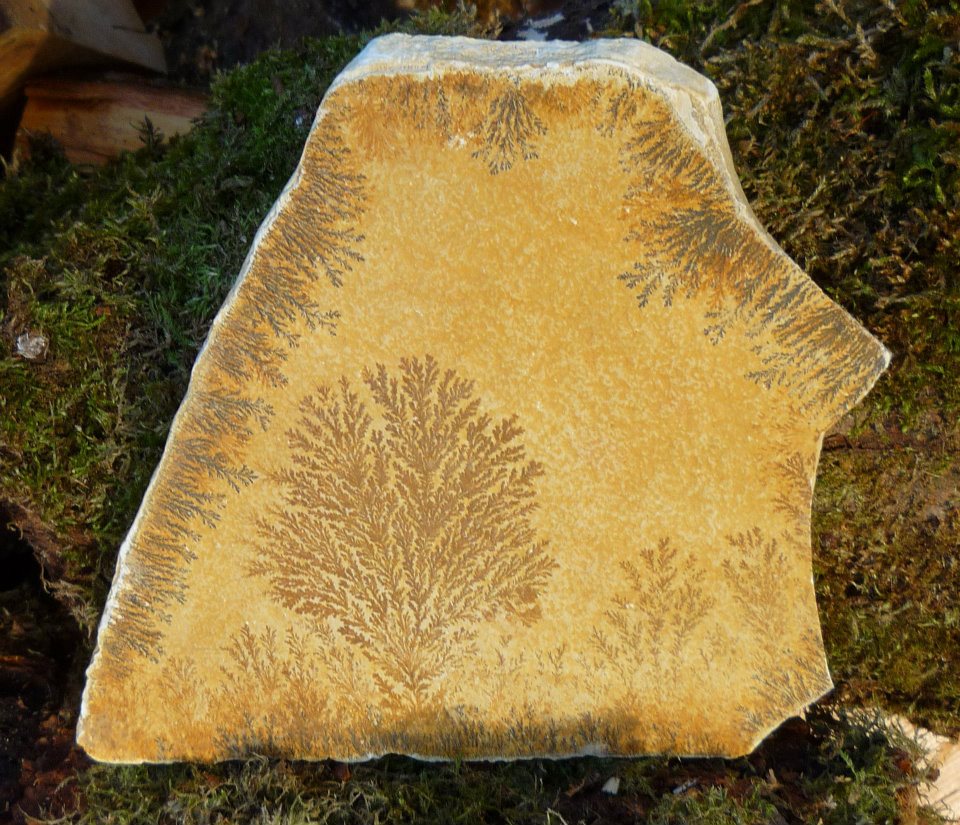 Schneeflocken entstehen ähnlich oder auch Frostmuster an Fenstern. Solnhofener Plattenkalke zeigen Dendriten die zwar farnähnlich aussehen, aber auch nur Eisen-Mangan- Einlagerungen darstellen Farbe Dunkelbraun, Schwarz