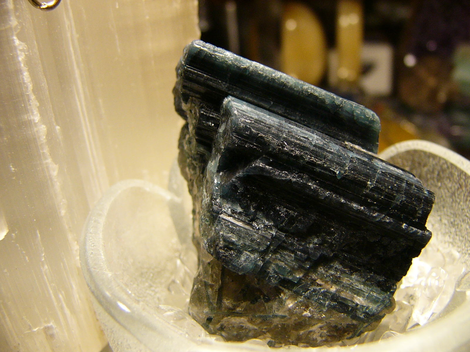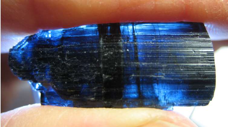Ein dunkler Indigolith mit meerblauer Färbung in der Mitte