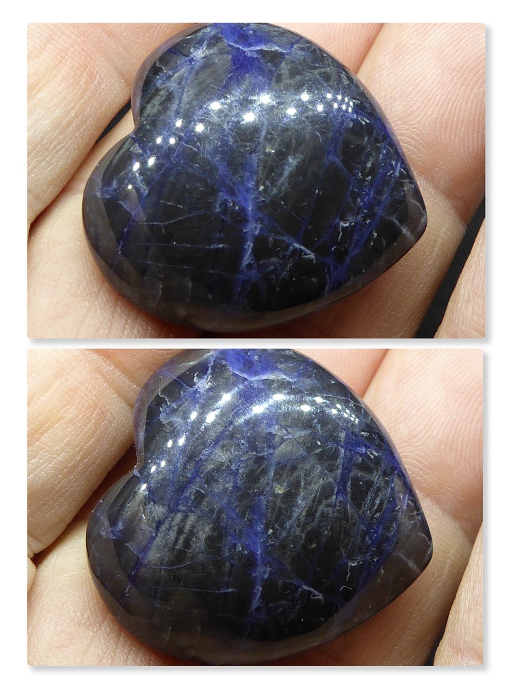 Sodalith schimmert, wenn man ihn in hellem Licht bewegt. Meine tun das alle. Probier's mal aus.