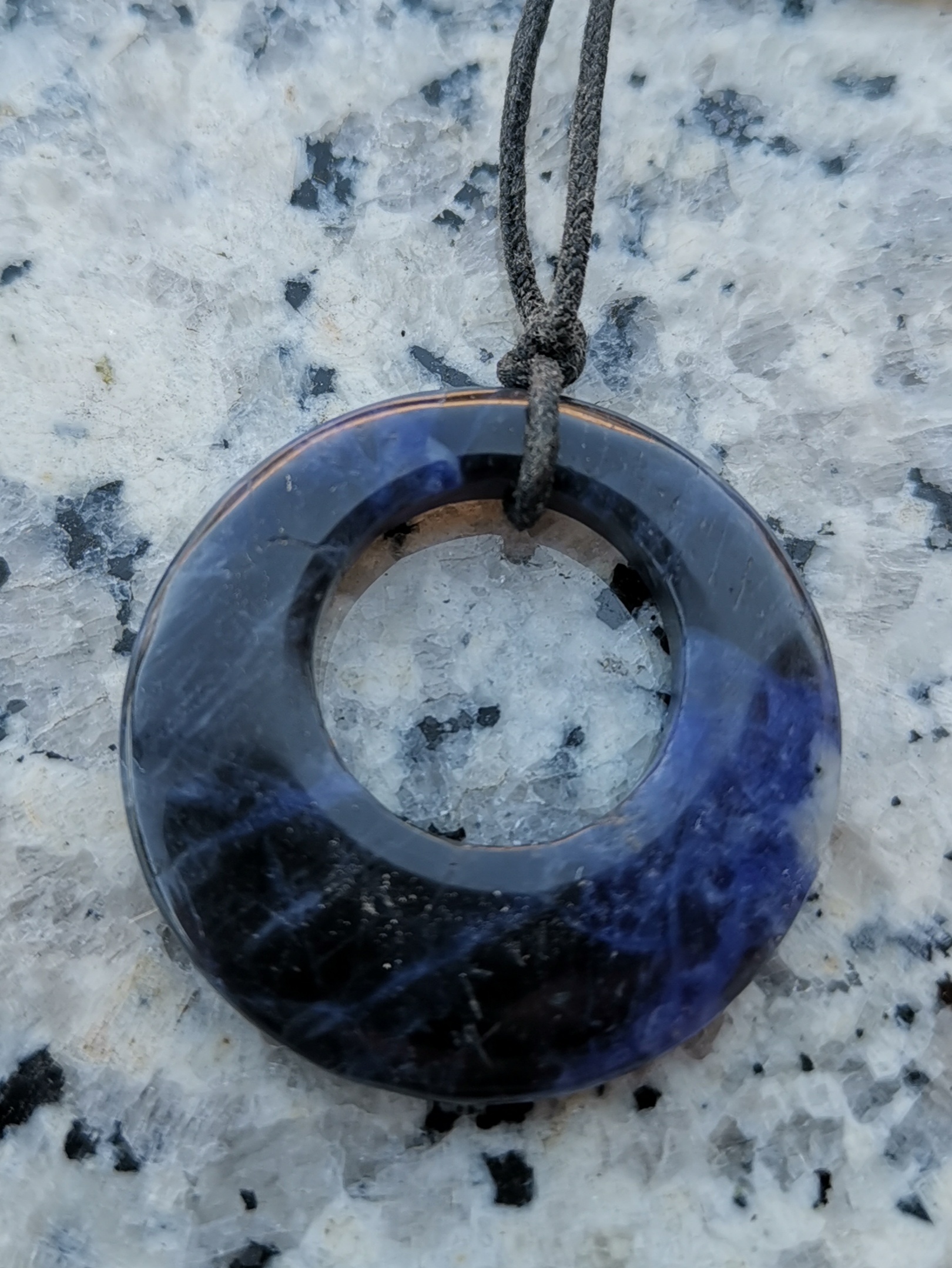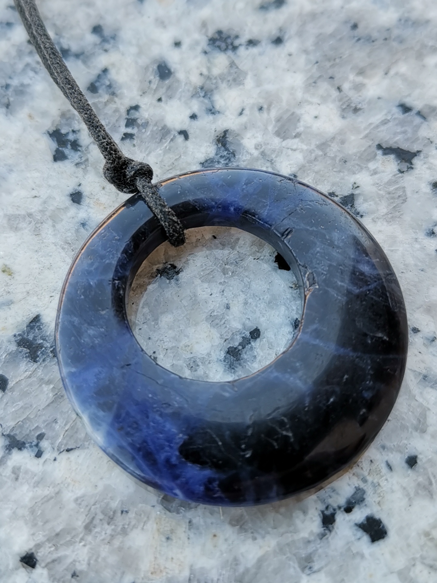 der Donut sieht für mich nicht nach Lapislazuli aus und nach Sugilith schon gar nicht. Mein Tipp ist wieder Sodalith.
