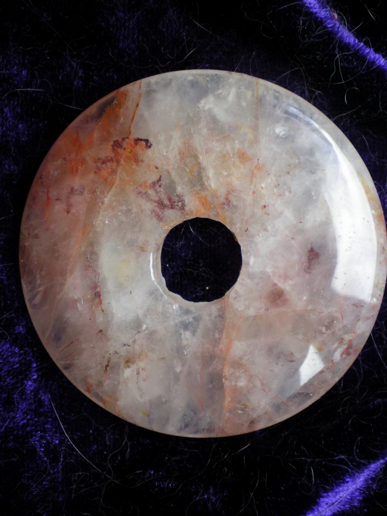 Zum einen ein Hämatit-Quarz-Donut, Durchmesser ca 5 cm, 31 gr.