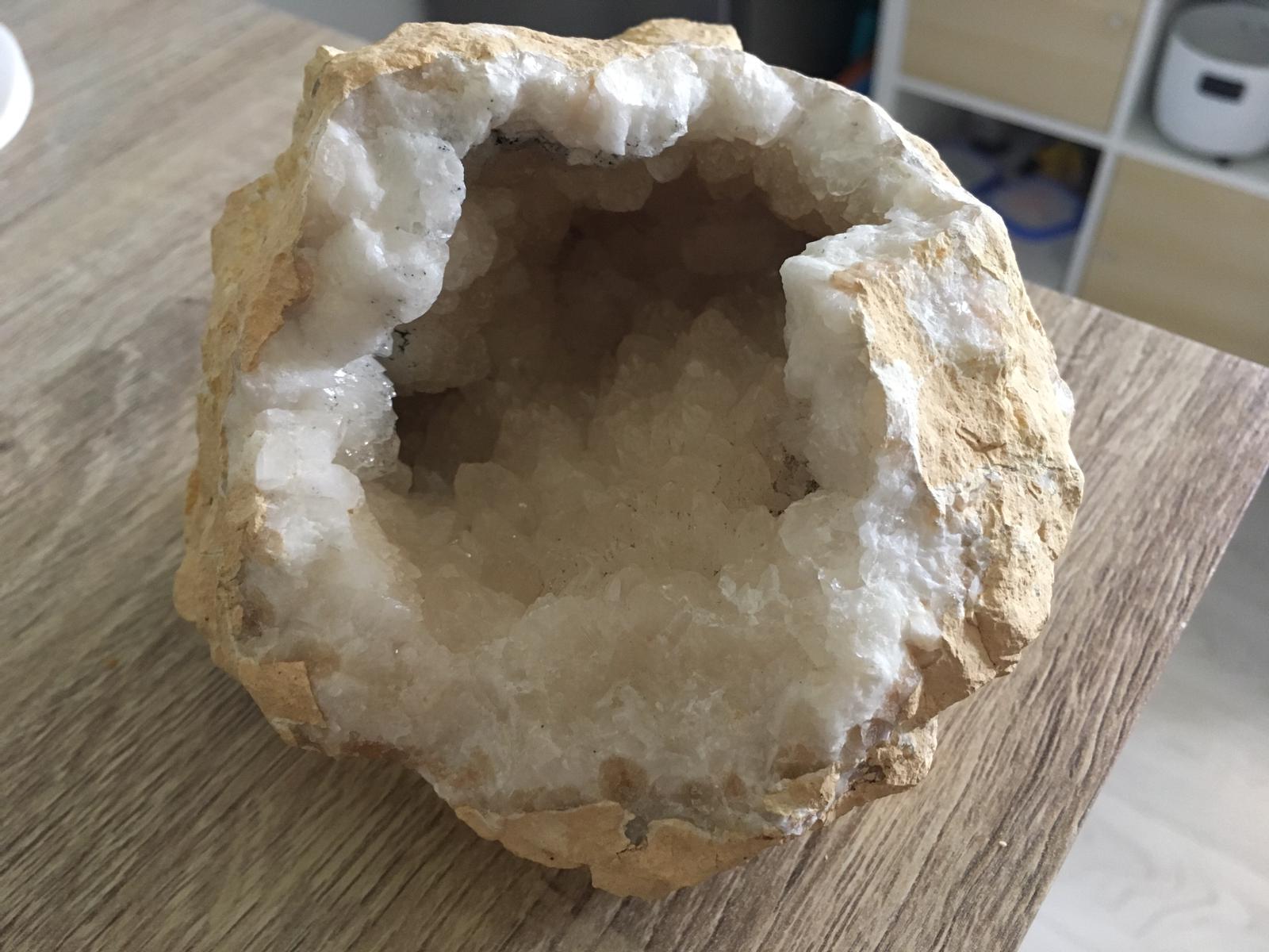 Wenn du die Kristalle mit Stahlschere oder Messer ritzen kannst ist es Calcit, wenn nicht Quarz, aus Marokko vermutlich.
