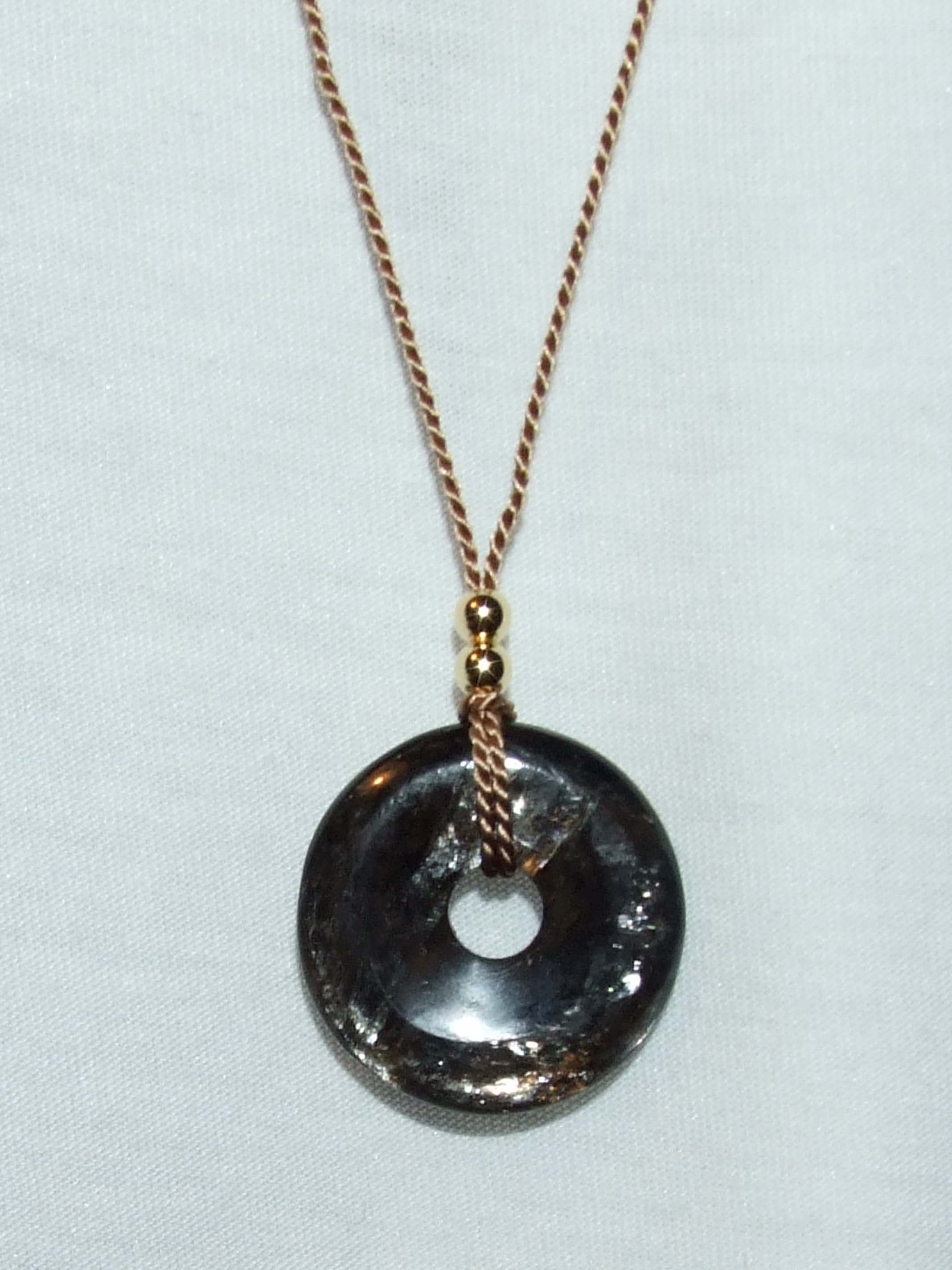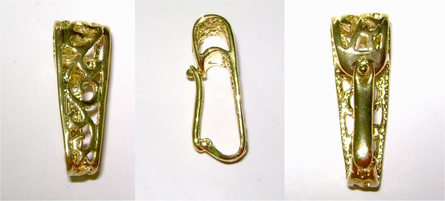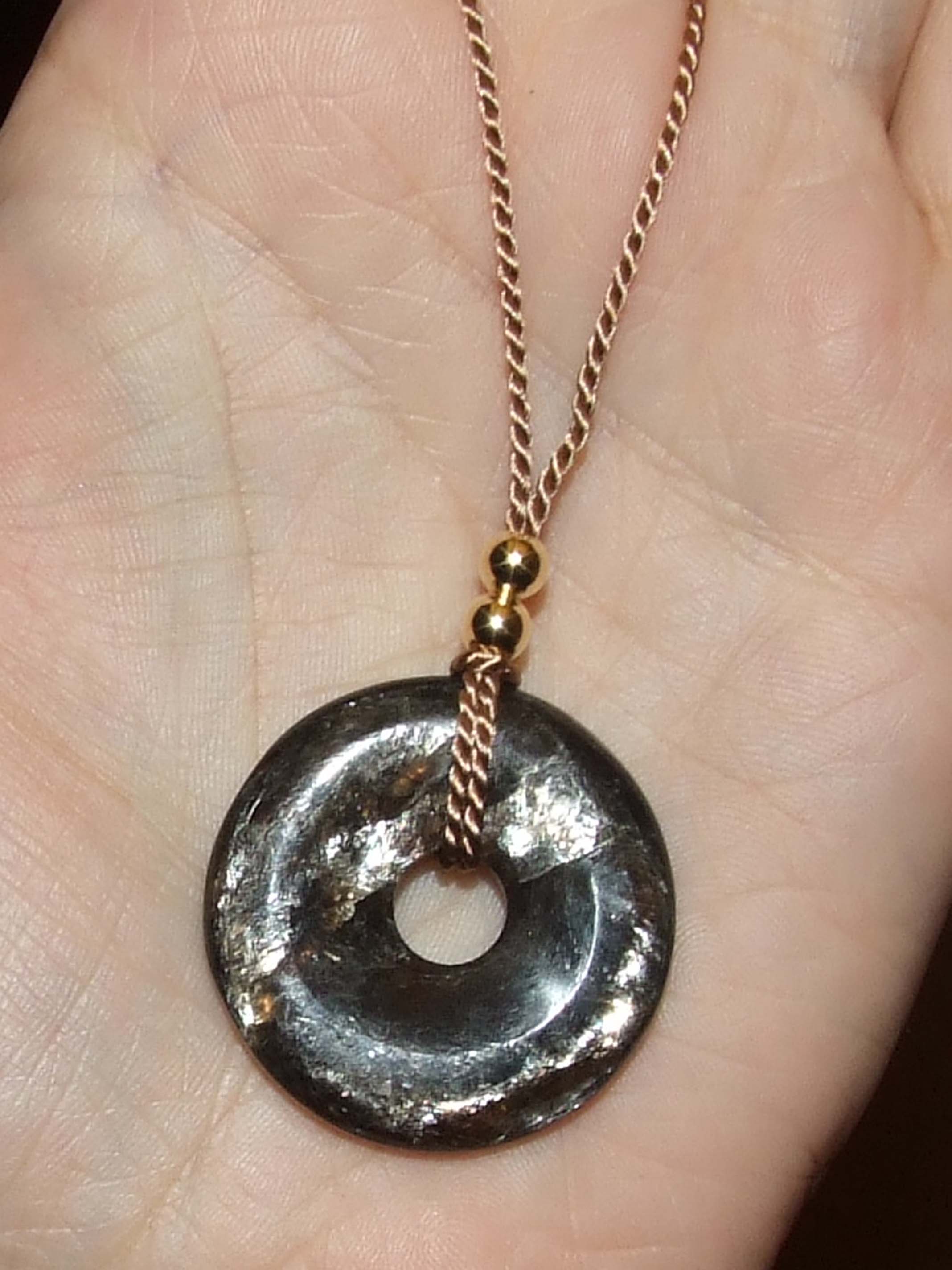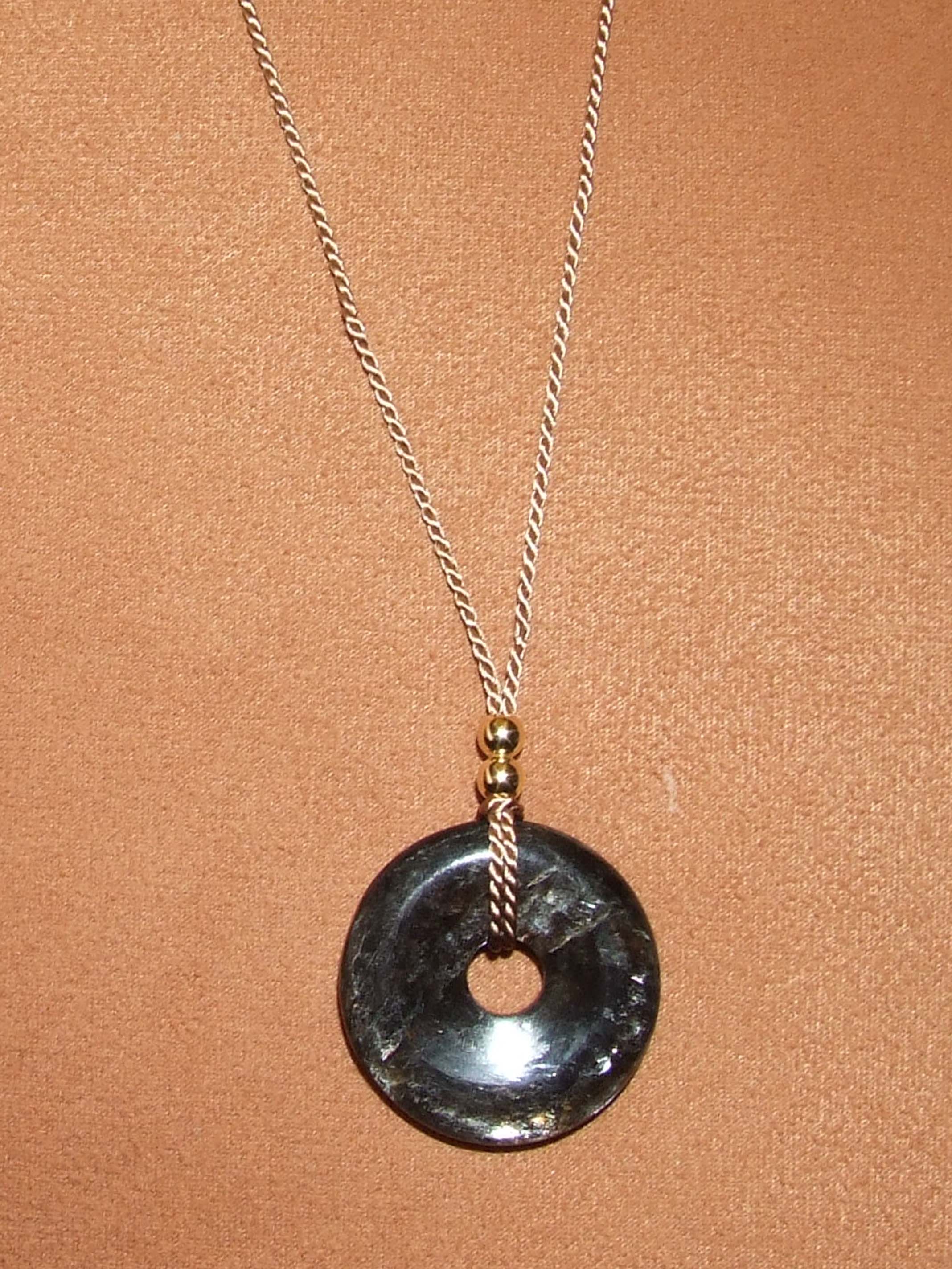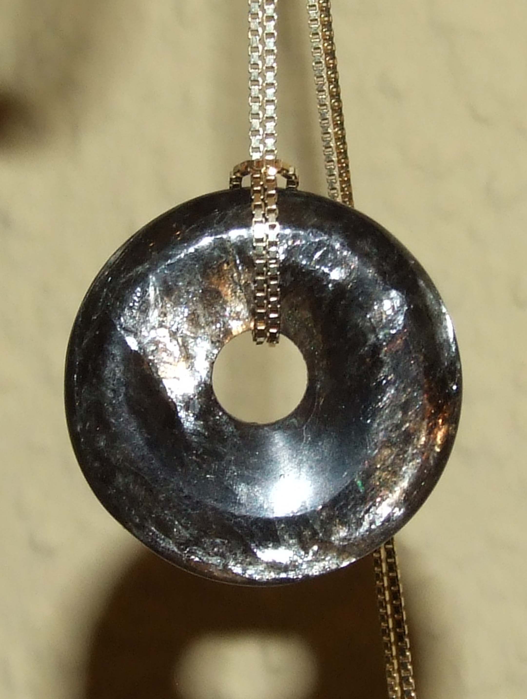 Auf dem Foto habe ich ihn an meine vergoldete Silberkette mittels Schlaufe gehangen. Aber ich glaube, wenn ich ihn dann mal trage, könnte er evtl. verloren gehen, da ja die Kette rutschiger ist als ein Leder- oder Seidenband, denke ich.