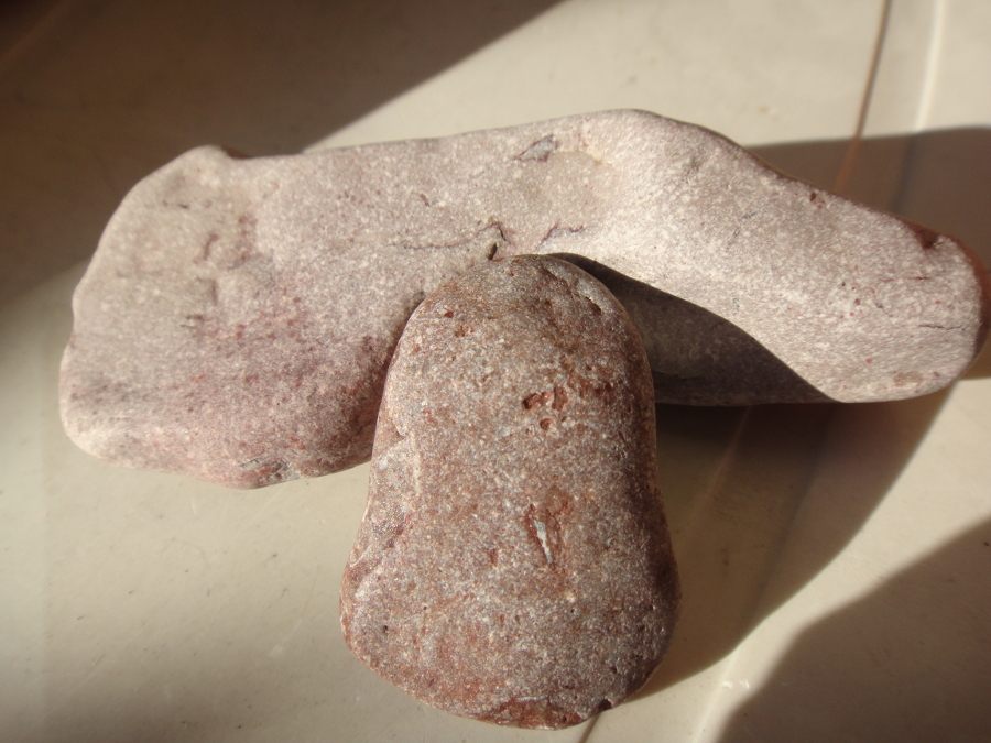 Ich vermute mal, dass es Sandsteine sind. Sie fühlen sich weich und glatt an. Irgendwie sehr angenehm.