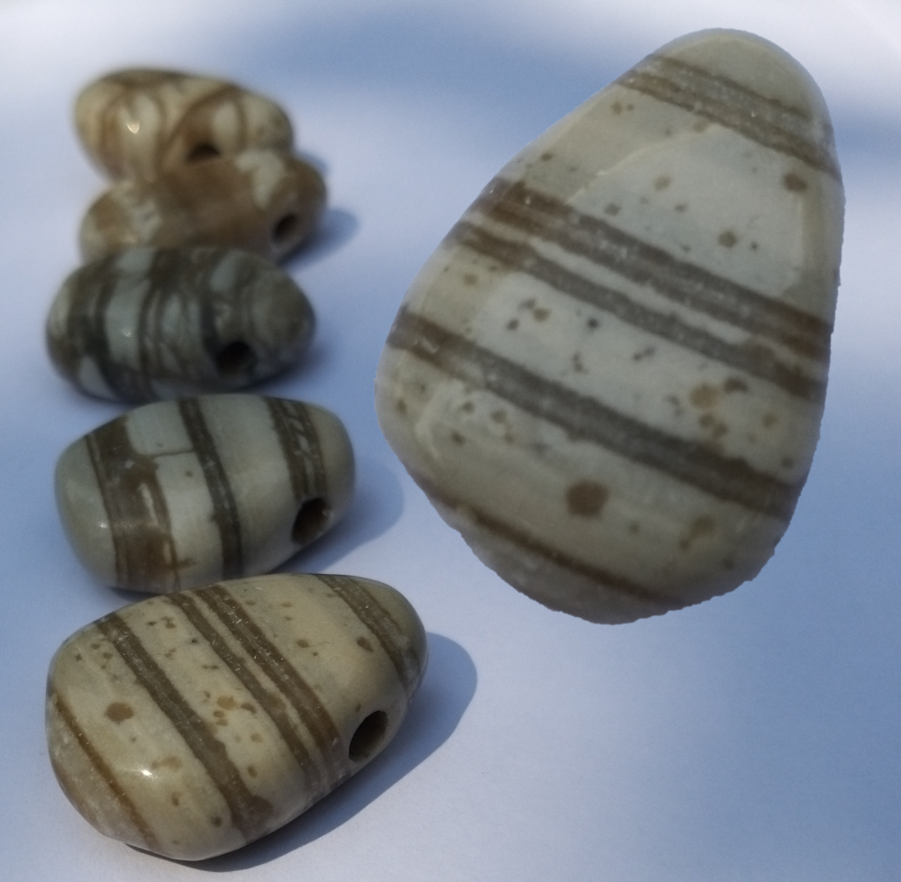 Aber hier habe ich nur etliche hundert solcher Streifensteine mit Bohrung, eigentlich ja nicht schlecht. bestimmt auch nicht künstlich, aber ws das sein kann... tja....