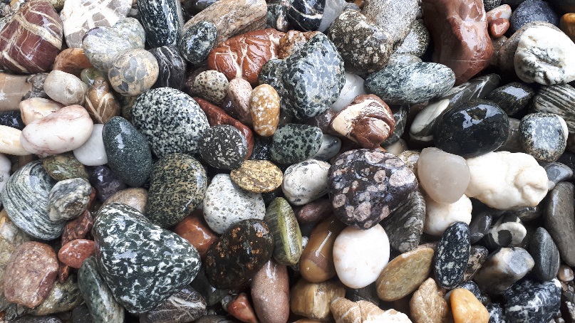 Es gibt walnussgroße bis faustgroße Steine. Ich versende alle kleinen Stein-Päckchen mit Hermes für 5 Euro, da ich dann gewichtsmäßig nicht eingeschränkt bin und sicher verpacken kann. Eine Warensendung mit Kieselsteinen zerlegt sich entweder unterwegs oder wird aufgerissen...