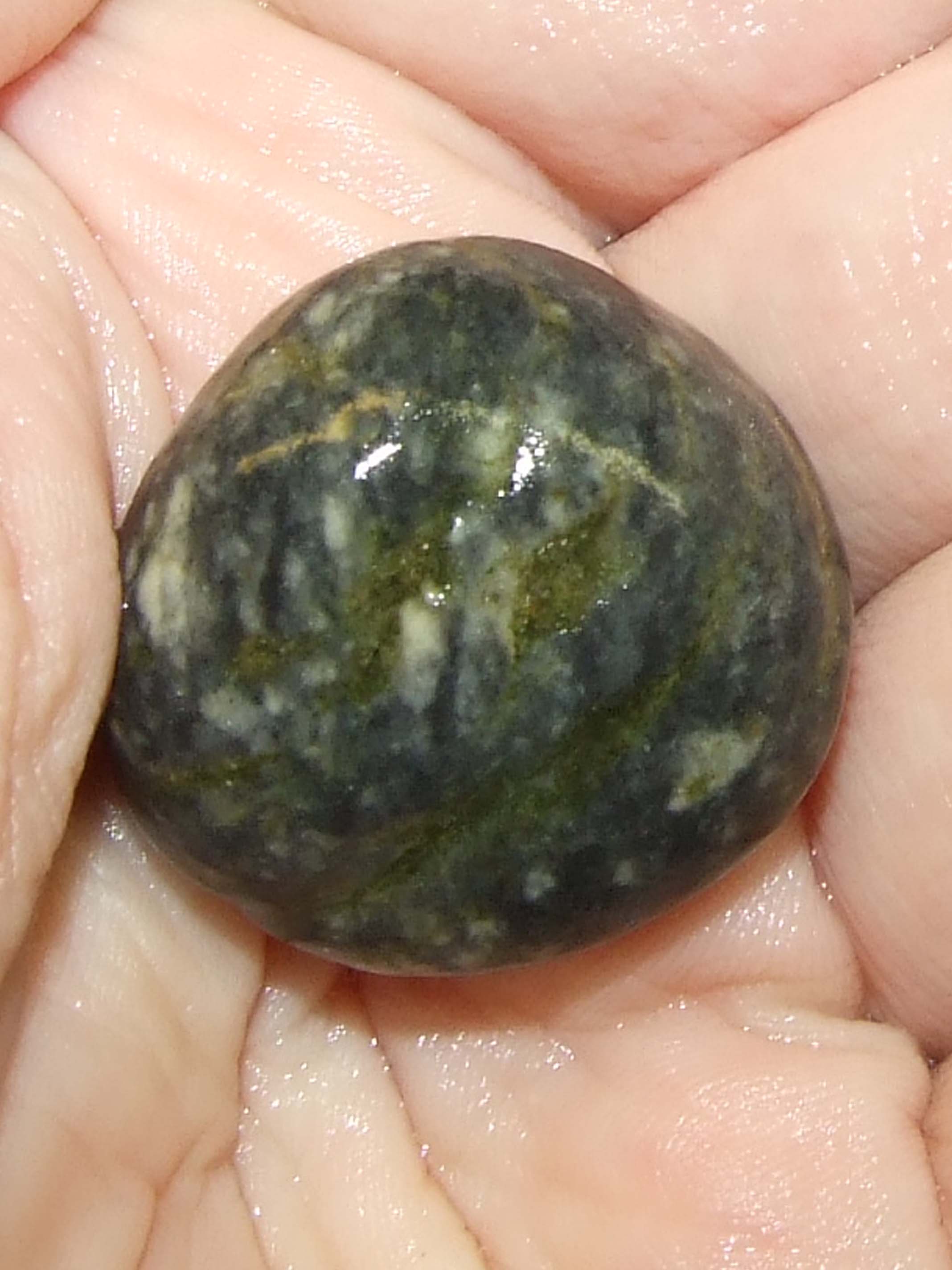 Beim Räumen des letzten Teils meiner alten Wohnung fand ich diese Tage noch mehrere Kilo Flusskiesel von der Isar, wenn ich mich richtig erinnere, die mir Helmut und seine Frau/Lebensgefährtin damals liebevoll gesammelt und geschickt hatten. Es sind ausgewählt schöne und interessante alpine Steine, deren Sorten hier im Forum zu seiner Zeit auch ausgiebig gezeigt und diskutiert wurden. Dabei sind auch Exemplare mit eingeschlossenen Granat- und Epidot-Kristallen.