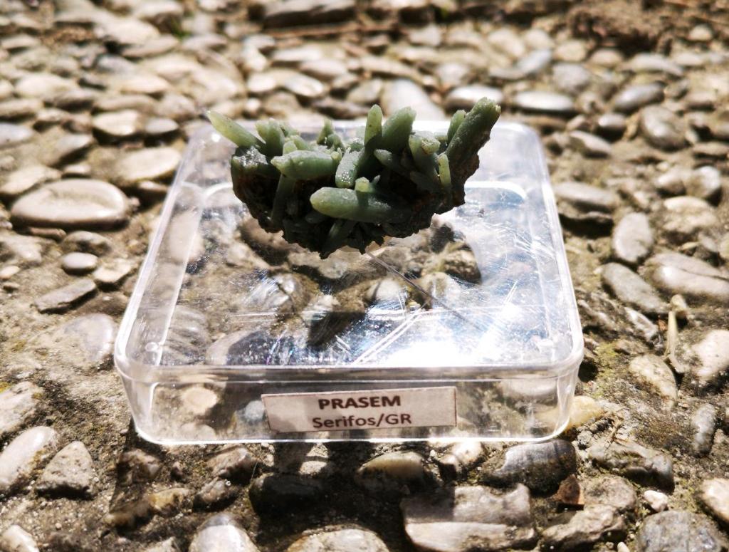 Prasem ist die lauchgrüne Varietät von Quarz mit Einschlüssen vom Amphibol Aktinolith