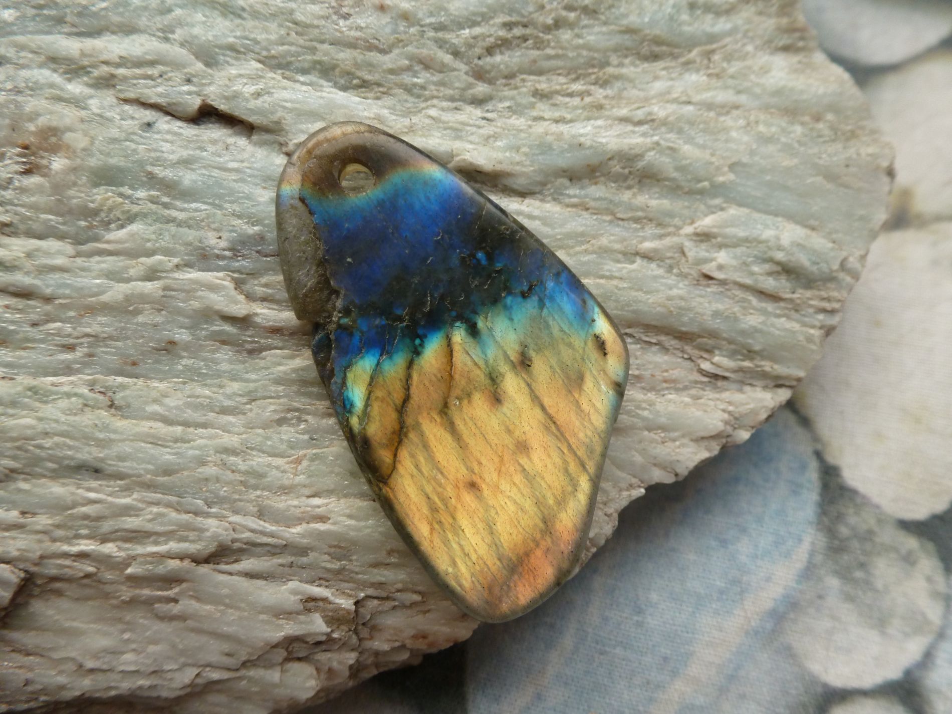 Labradorit-Anhänger, blau und gestreift.