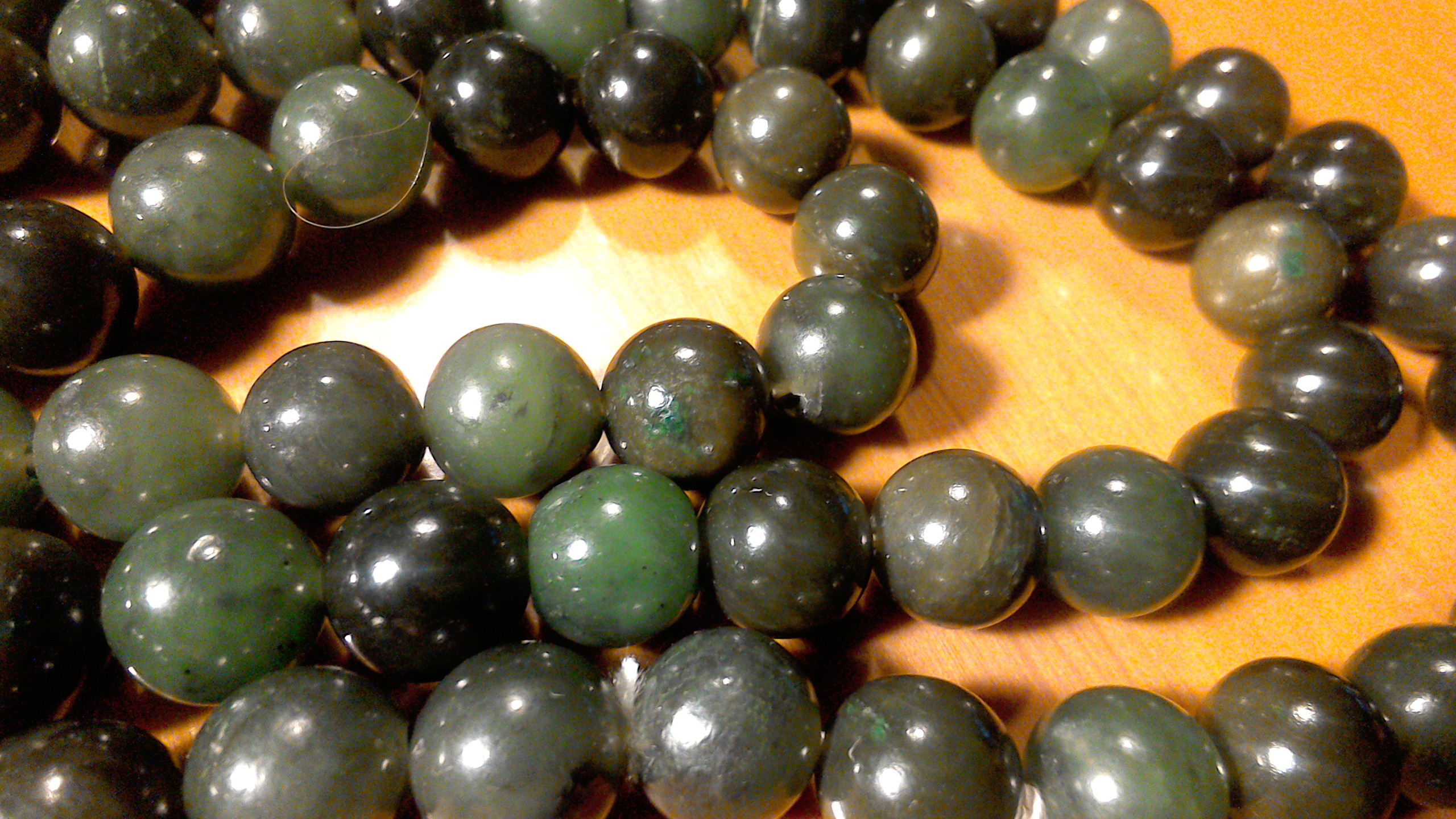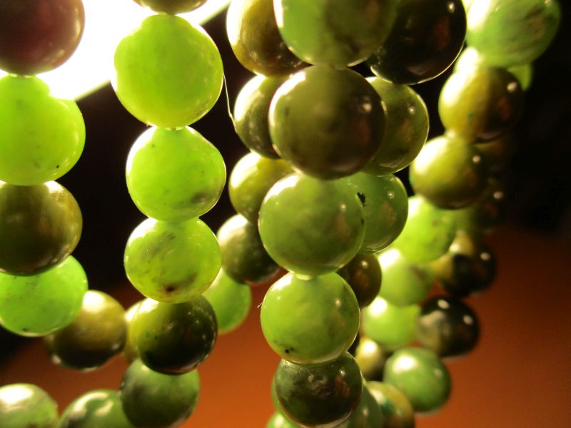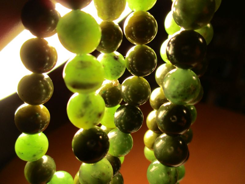 Wie im oberen Bild zu sehen ist, haben einige Perlen "künstlich-grüne" Farbspenkel.