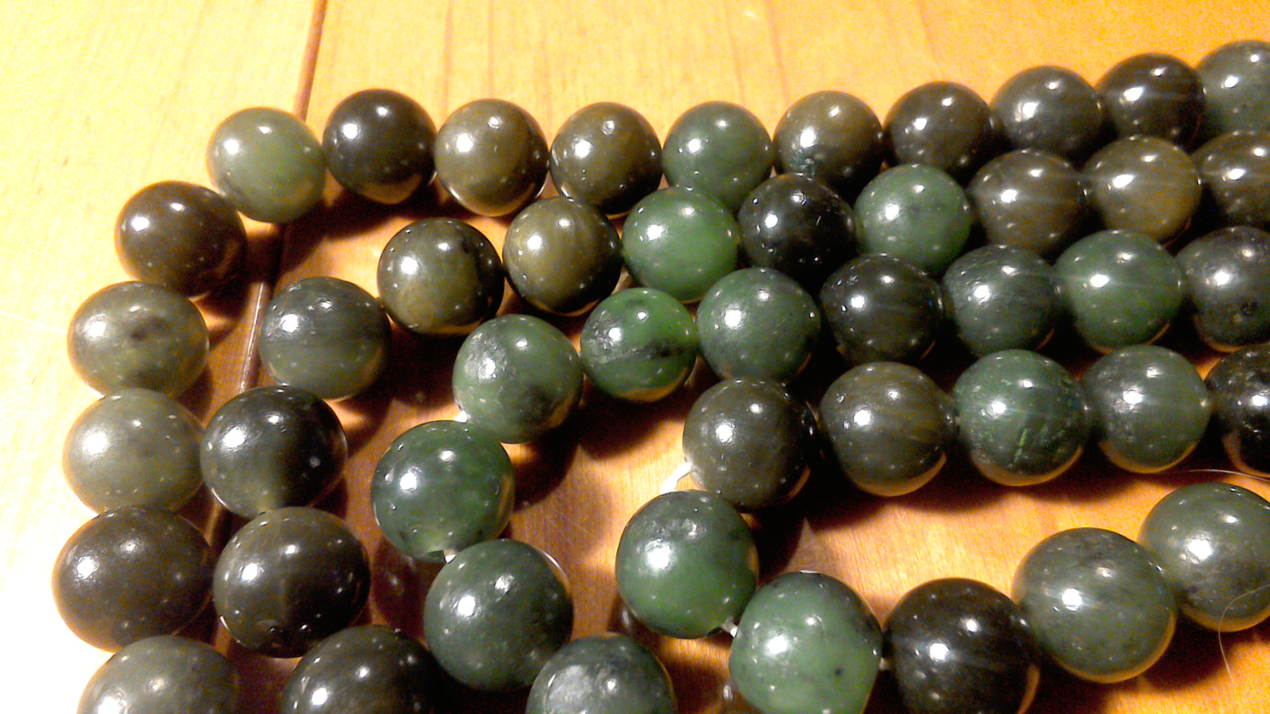 für mich sehen die Perlen, besonders die helleren grünen, stark nach Nephrit aus.
