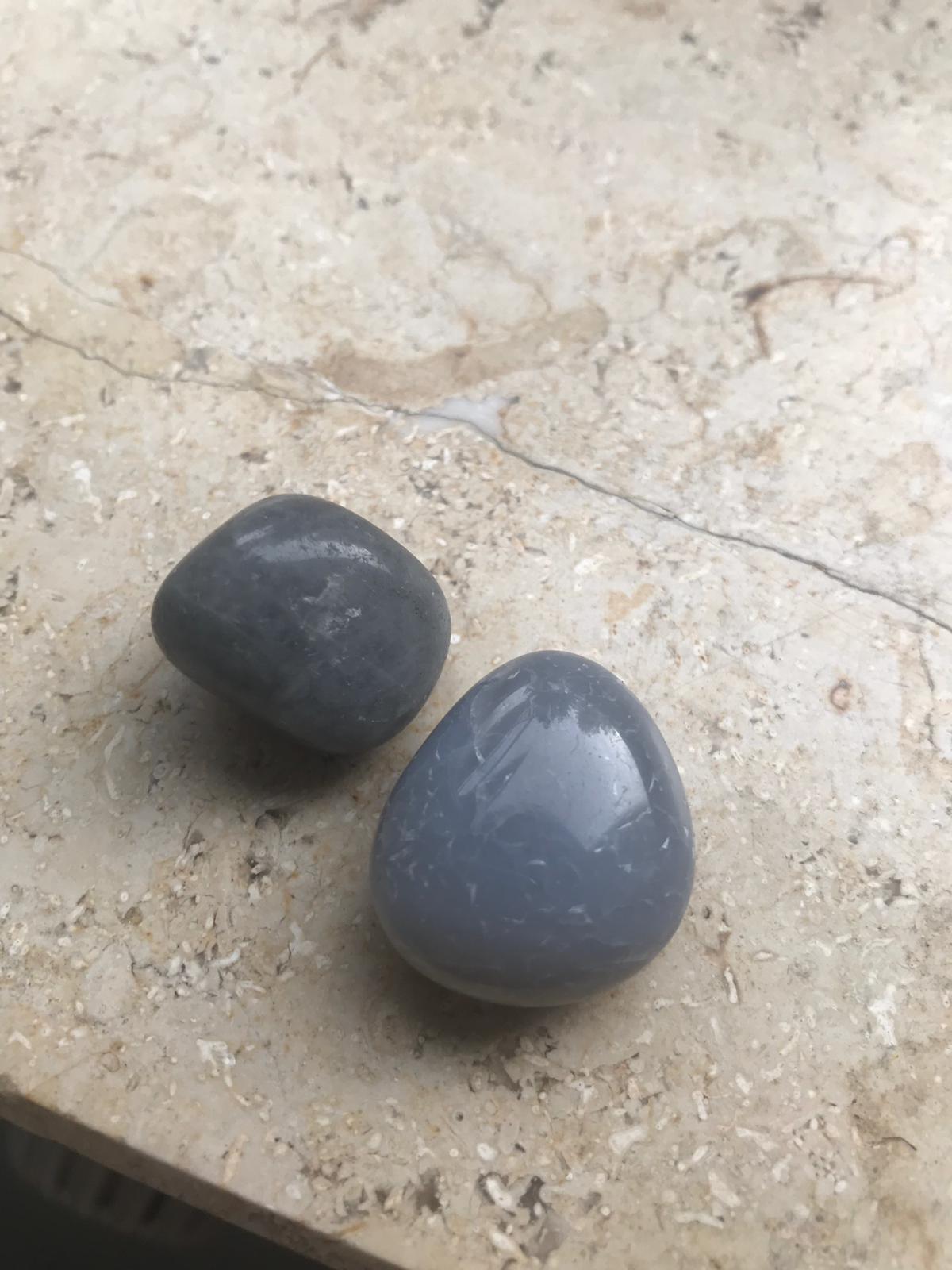Sind diese Steine auch aus einer Mischung? Dann wäre Achat wahrscheinlicher als Angelit.