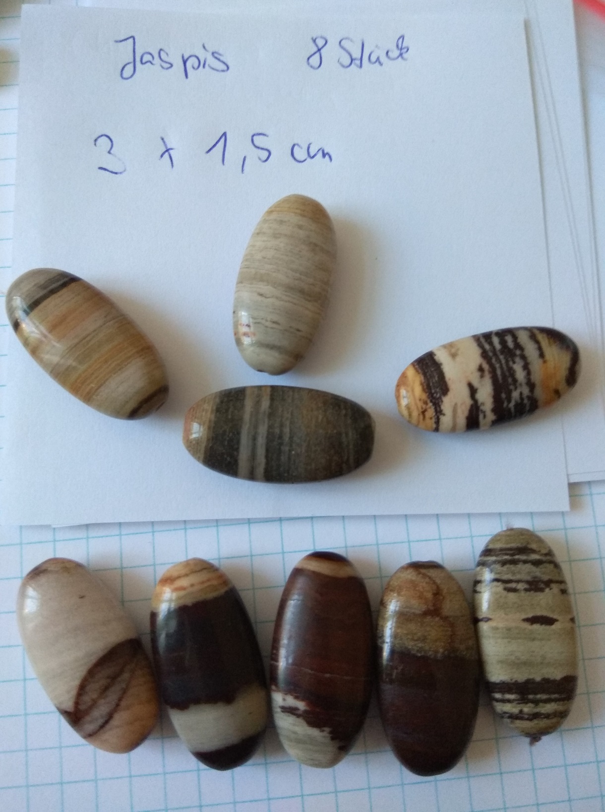 und noch lange ovaler Jaspis als längliche Kettelsteine (Nr. 128)
