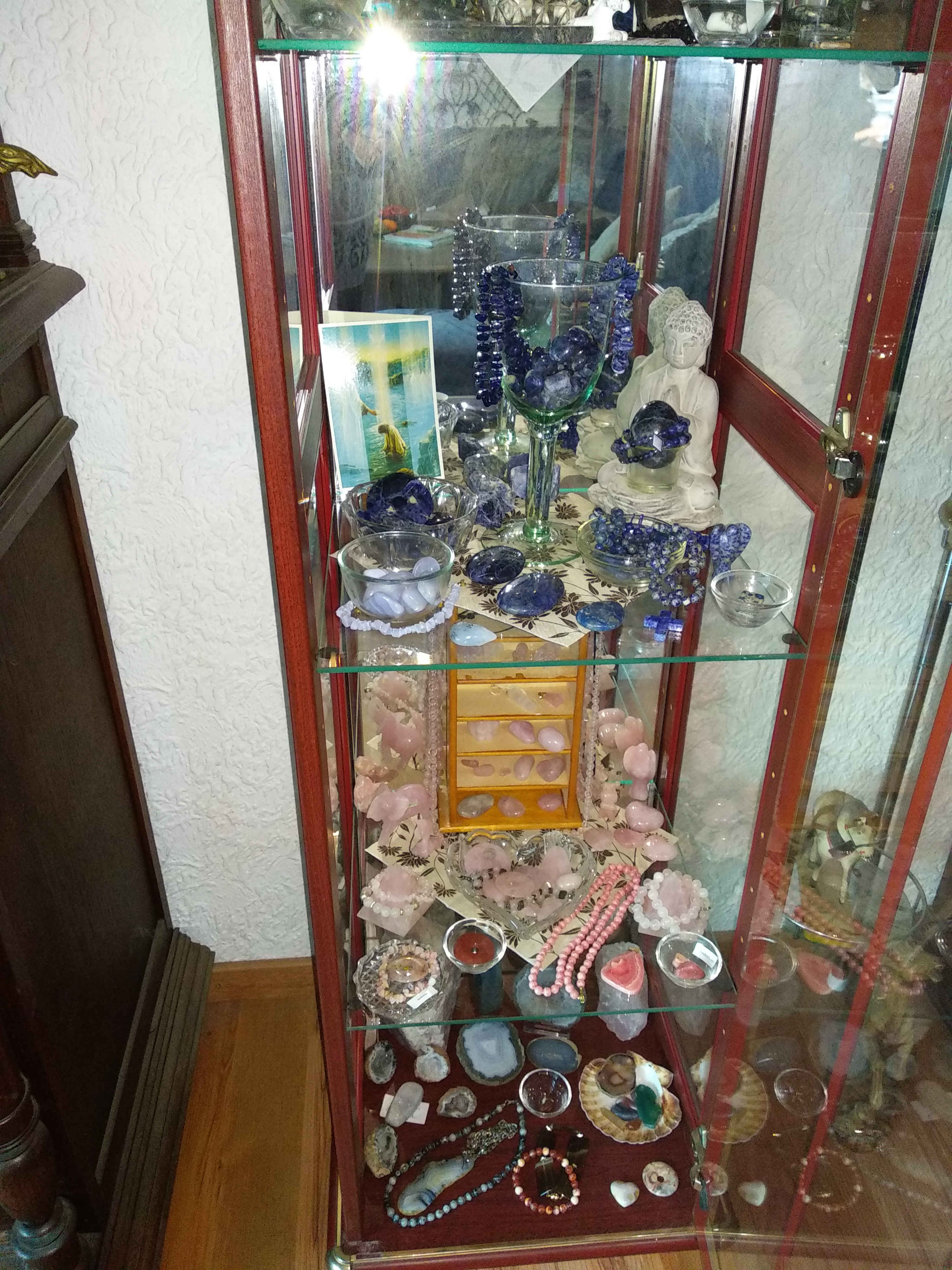 Früher hatte ich meine Steine in der Schublade rumliegen. Seit ich sie in der Vitrine habe, erfreue ich mich jedes Mal darüber, wenn ich vorbei gehe. Auch trage ich sie seit dem regelmäßig.