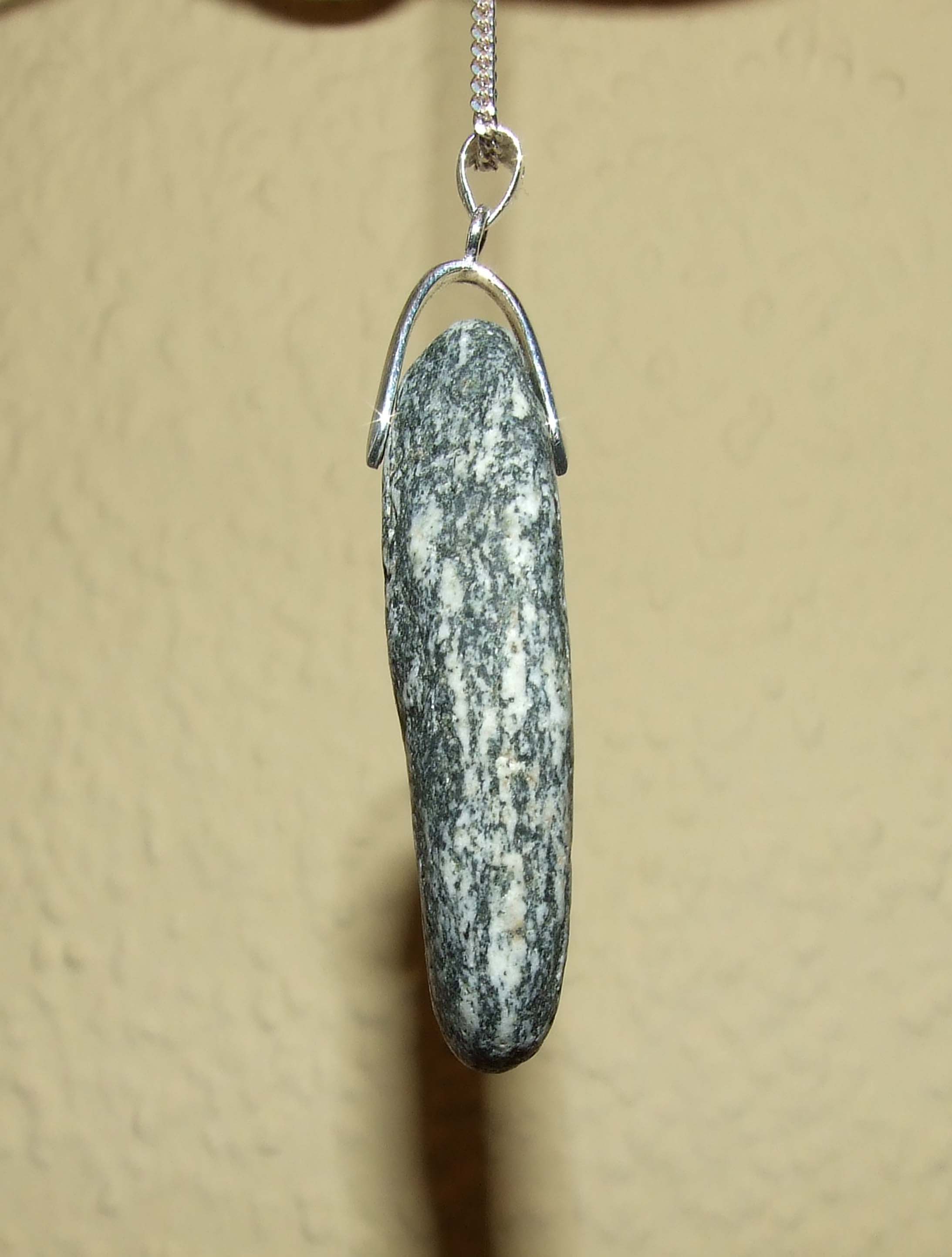 Ich habe ihn vorhin noch einmal fotografiert, im trockenem Zustand, ungeschliffen, unlackiert, an einer Silber-Öse.