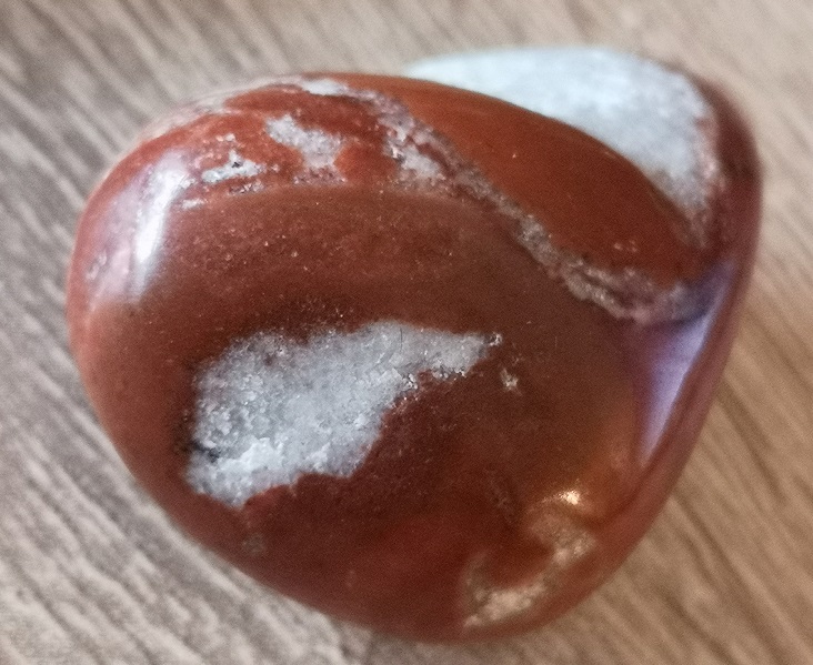 Da wir bei dem anderen Post schon einen roten Jaspis mit Quarzeinschluss bestimmt haben und die beiden aus einer Lieferung kamen, habe ich den Verdacht das es bei ihm auch so ist auch wenn er speckiger wirkt.