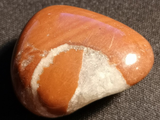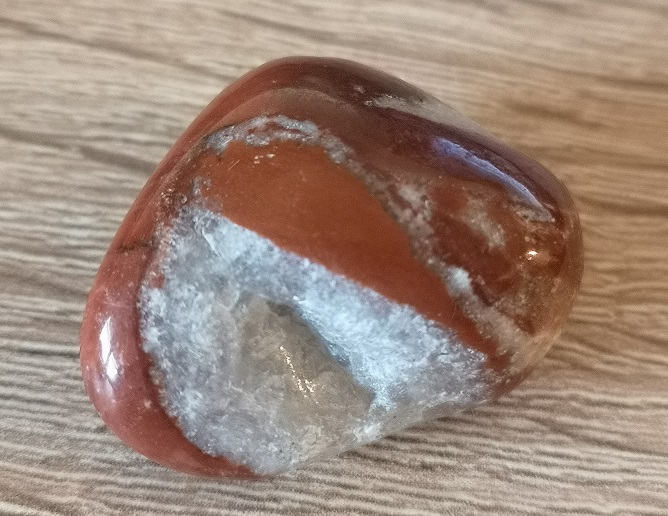 Da wir bei dem anderen Post schon einen roten Jaspis mit Quarzeinschluss bestimmt haben und die beiden aus einer Lieferung kamen, habe ich den Verdacht das es bei ihm auch so ist auch wenn er speckiger wirkt.