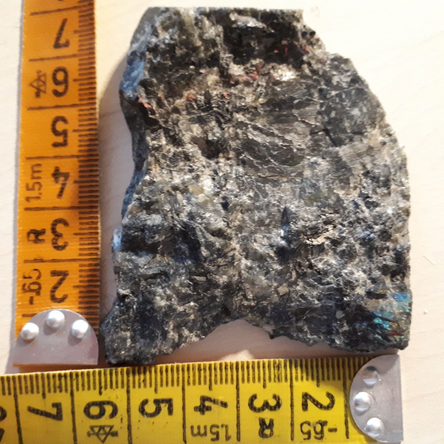 ich habe bei den ersteren Fotos auch schon an Larvikit gedacht. Allerdings hatten mich diese rötlichen Stellen irritiert. Aber bläuliche schimmernde Stellen kann ja der Larvikit schon aufweisen.