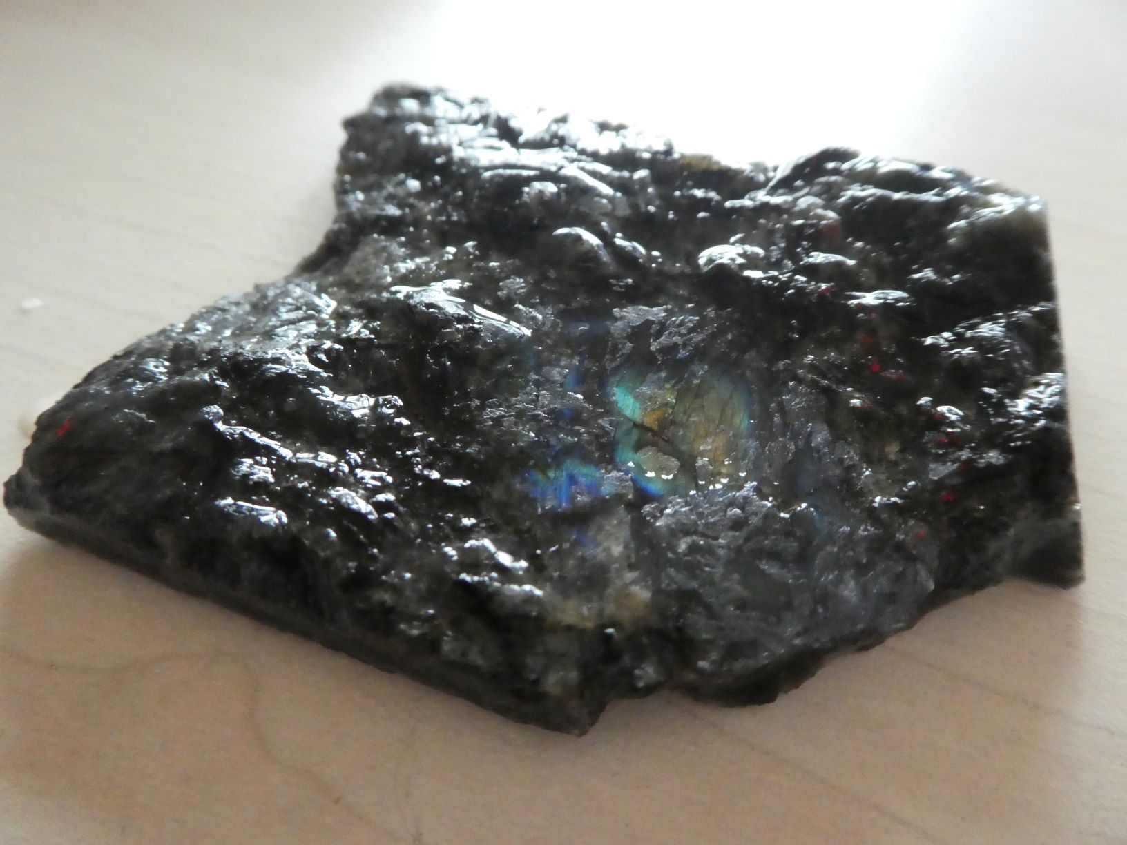 Das ist für mich eindeutig ein Labradorit-Rohstein,