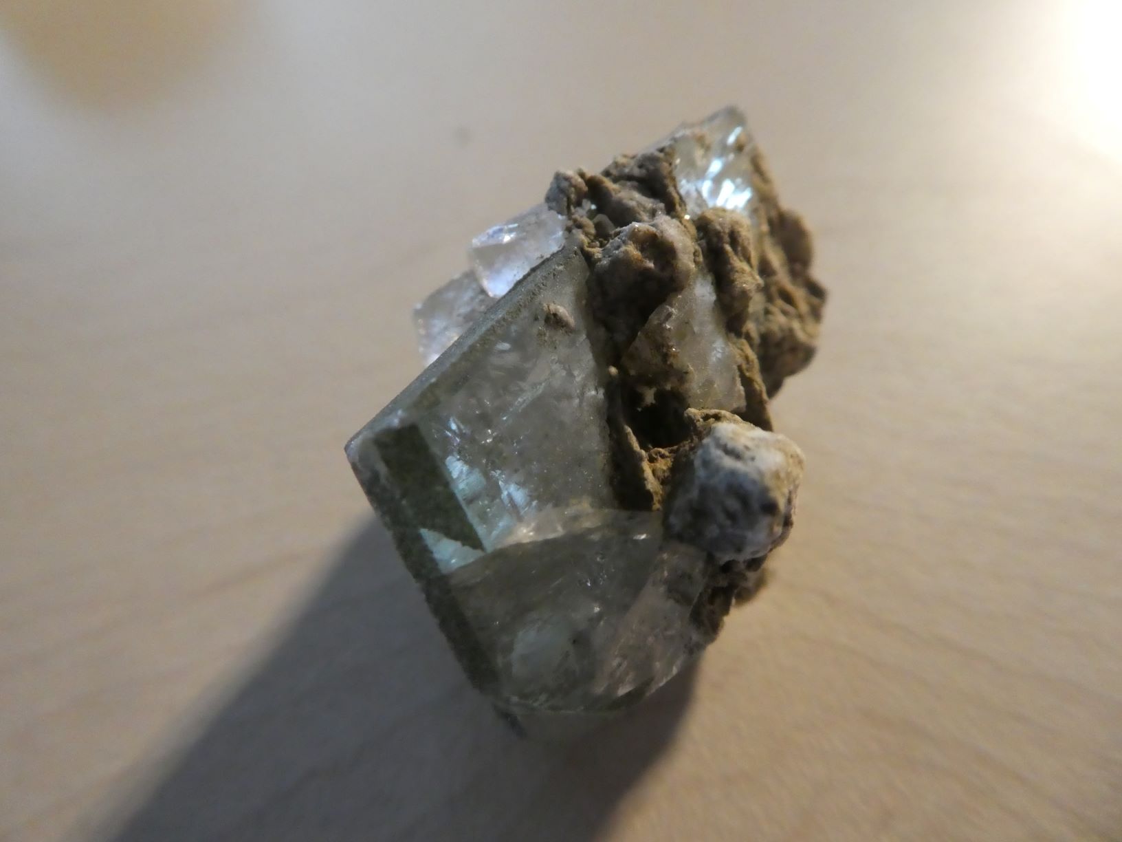 Sind da nicht Würfel und Oktaeder zu erkennen? Könnt´ es nicht farbloser Fluorit sein?