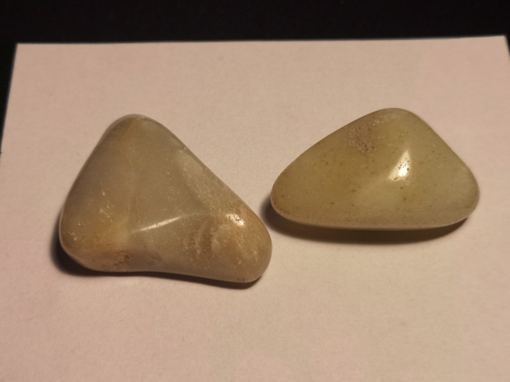 Die Steine sind nicht Transparenz, haben eine beige leicht grüne Farbe. Ich habe keine klaren Stellen ohne splittrige Stellen gesehen die ich von Quarzen her kenne.
