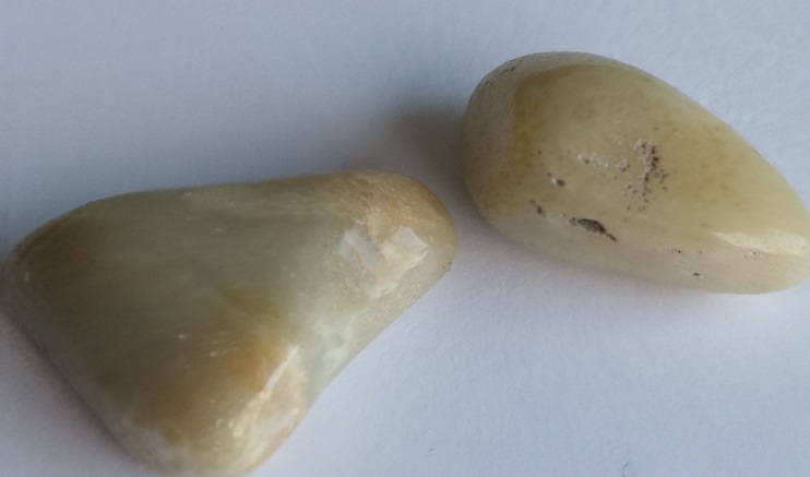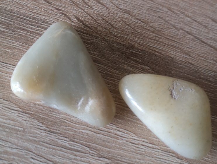 Die Steine sind nicht Transparenz, haben eine beige leicht grüne Farbe. Ich habe keine klaren Stellen ohne splittrige Stellen gesehen die ich von Quarzen her kenne.