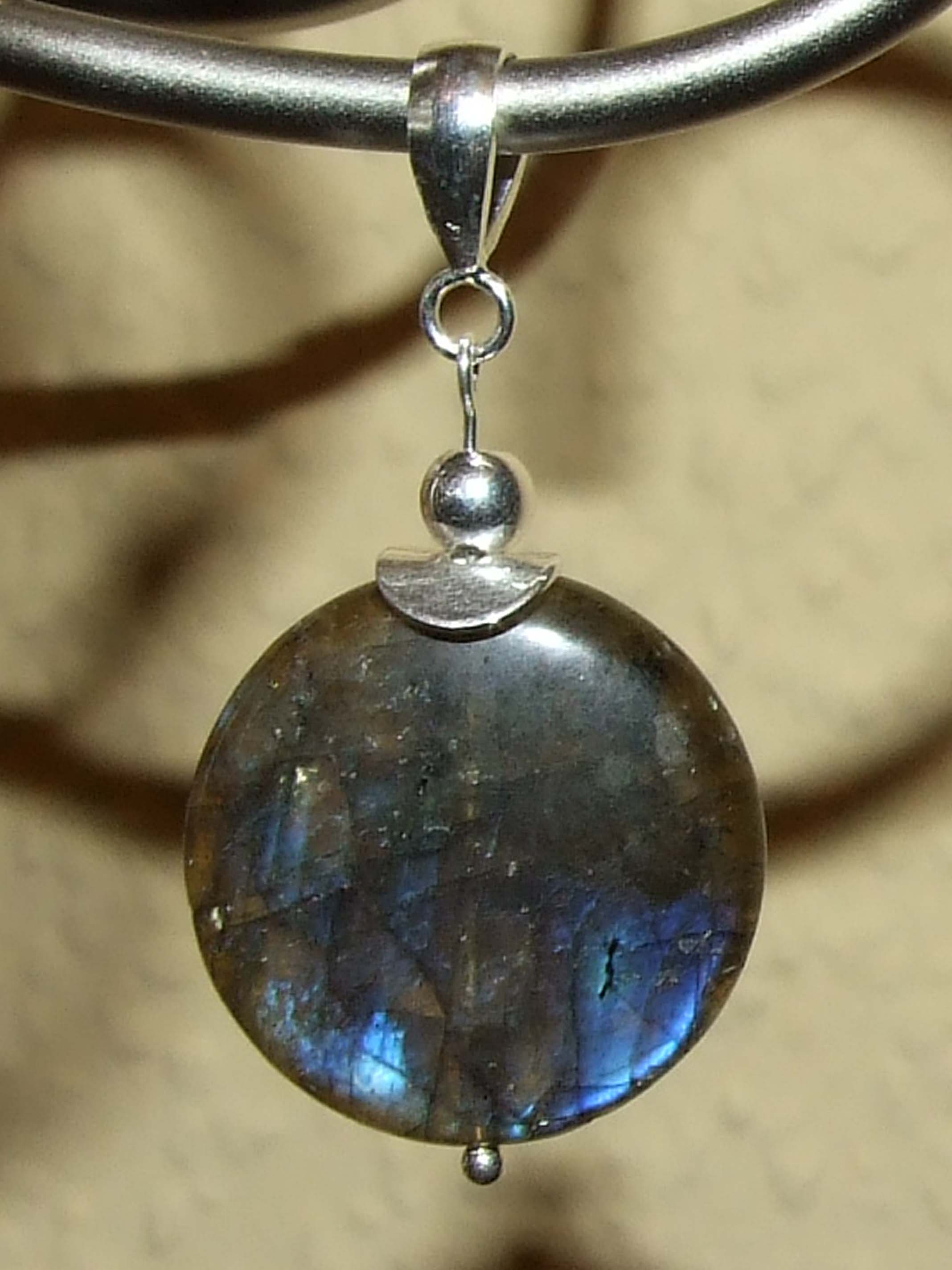 Da ich von diesen Labradoriten einen ganzen Strang habe, habe ich daher noch ein paar Anhänger übrig, aber mit weniger Schimmer.