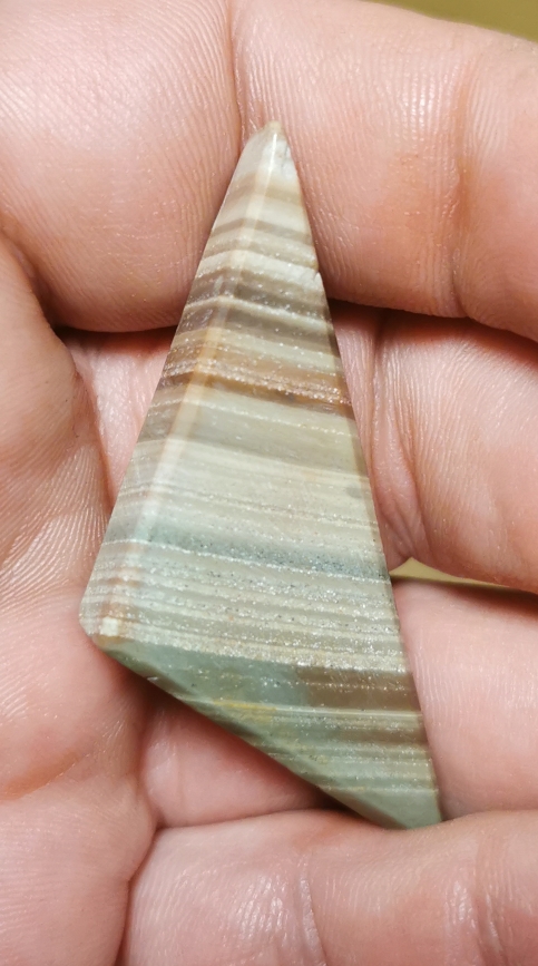 In den Ecken sieht man noch die ursprüngliche Farbe von dem Stein. Jetzt ist er ganz Braun geworden, wobei die Bänderungen jedoch gut erhalten bleiben.