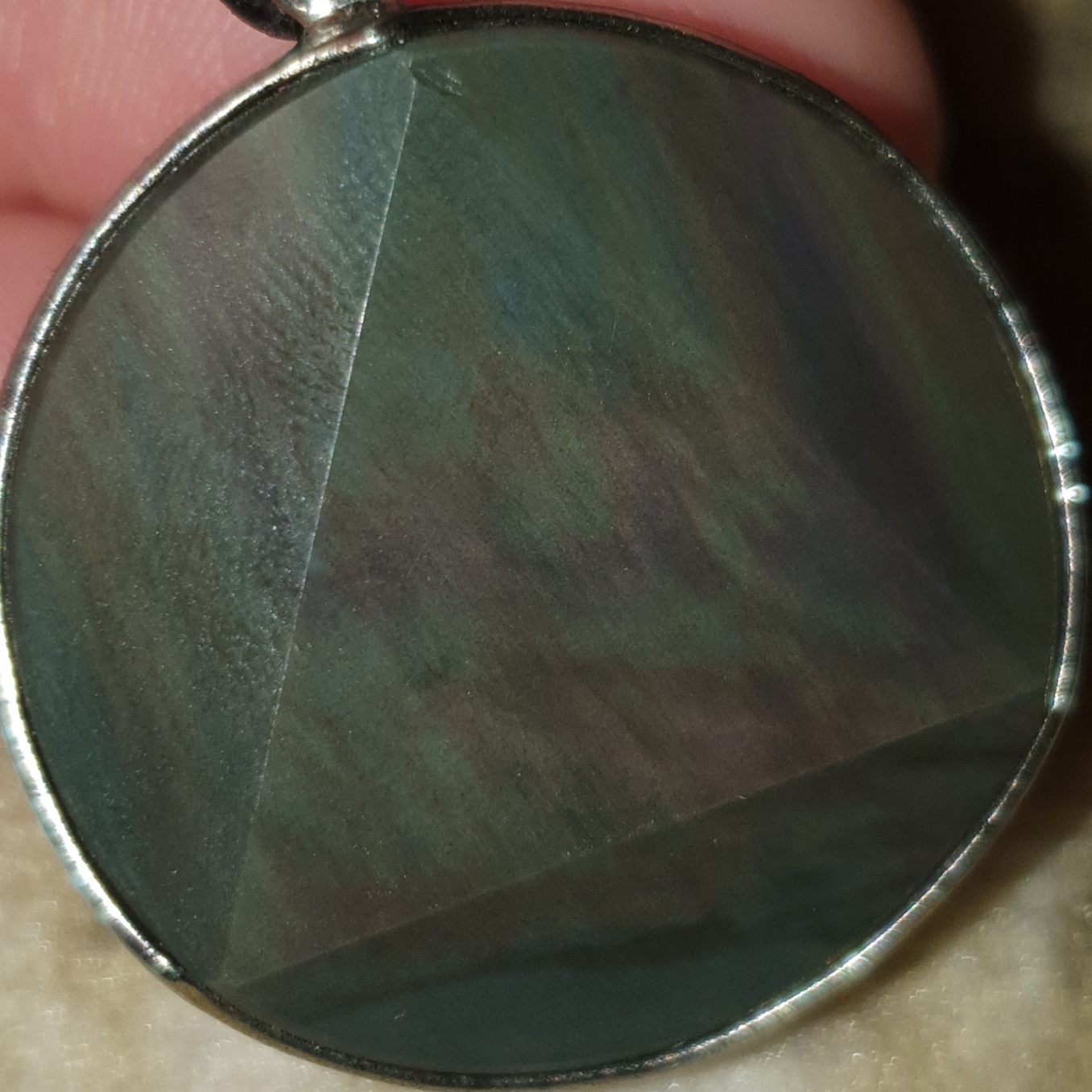 Inzwischen ist mir aber aufgefallen, dass die Farbreflexe, wenn ich den Anhänger im Licht bewege, doch nicht wirklich auf ihrem Platz bleiben. Ist sehr schwer zu beschreiben. Seit gestern verbringe ich Stunde um Stunde mit diesem Anhänger und er gibt mir immer nur mehr Rätsel auf... aber gleichzeitig finde ich ihn immer schöner <3